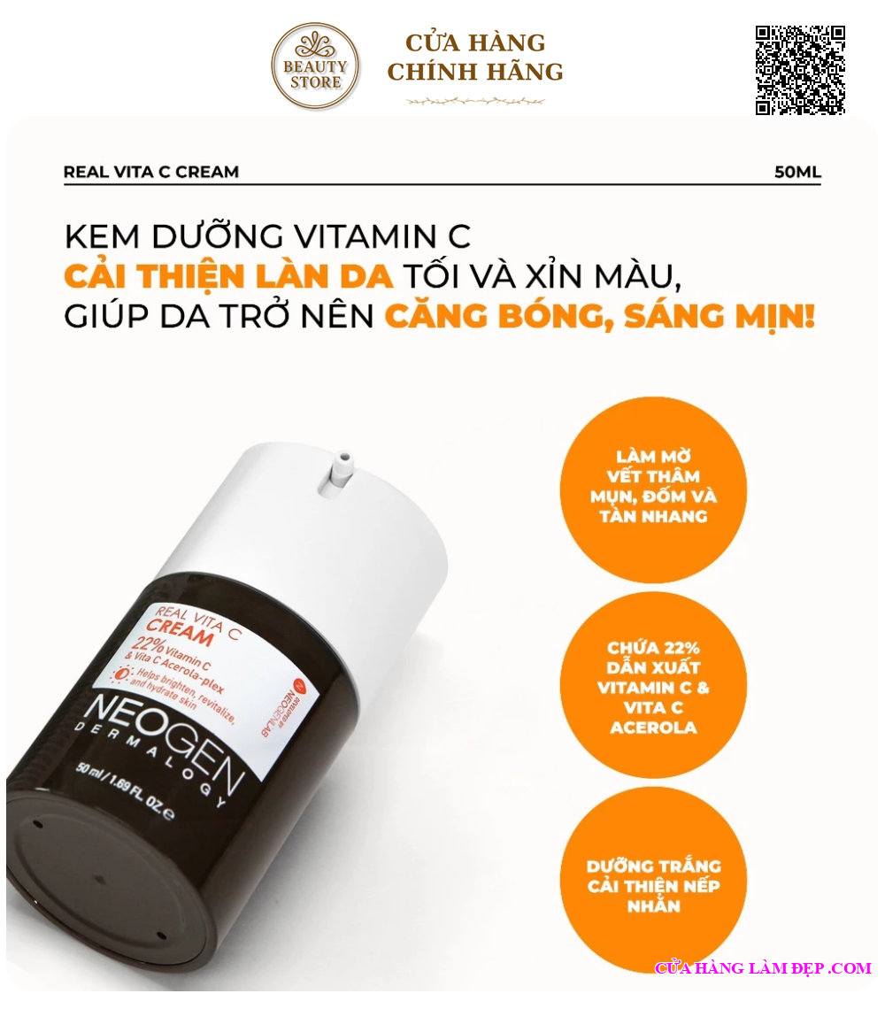 Tại hệ thống Cửa Hàng Làm Đẹp, sản phẩm Kem Dưỡng Neogen Dermalogy Real Vita C Cream Kem Vitamin C Dưỡng Sáng, Mờ Thâm Mụn, Chống Gốc Tự Do 50ml từ Hàn Quốc có giá 680.000 VNĐ