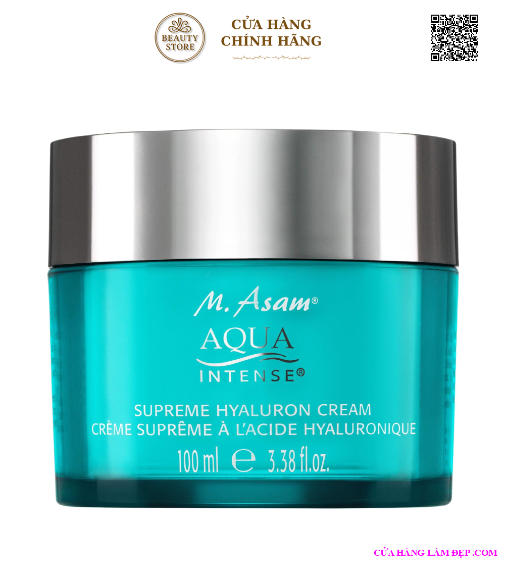 M. Asam Aqua Intense Supreme Hyaluron Cream có lợi cho da khô. Kem không chứa nước hoa này cung cấp độ ẩm chuyên sâu nhờ phức hợp axit hyaluronic được cấp bằng sáng chế bao gồm axit hyluronic phân tử thấp và cao, axit hyaluonic được bao bọc và escin.