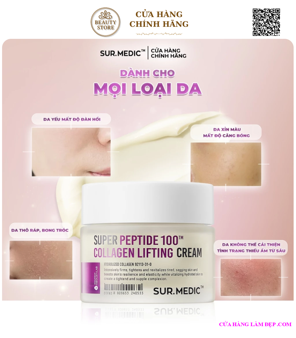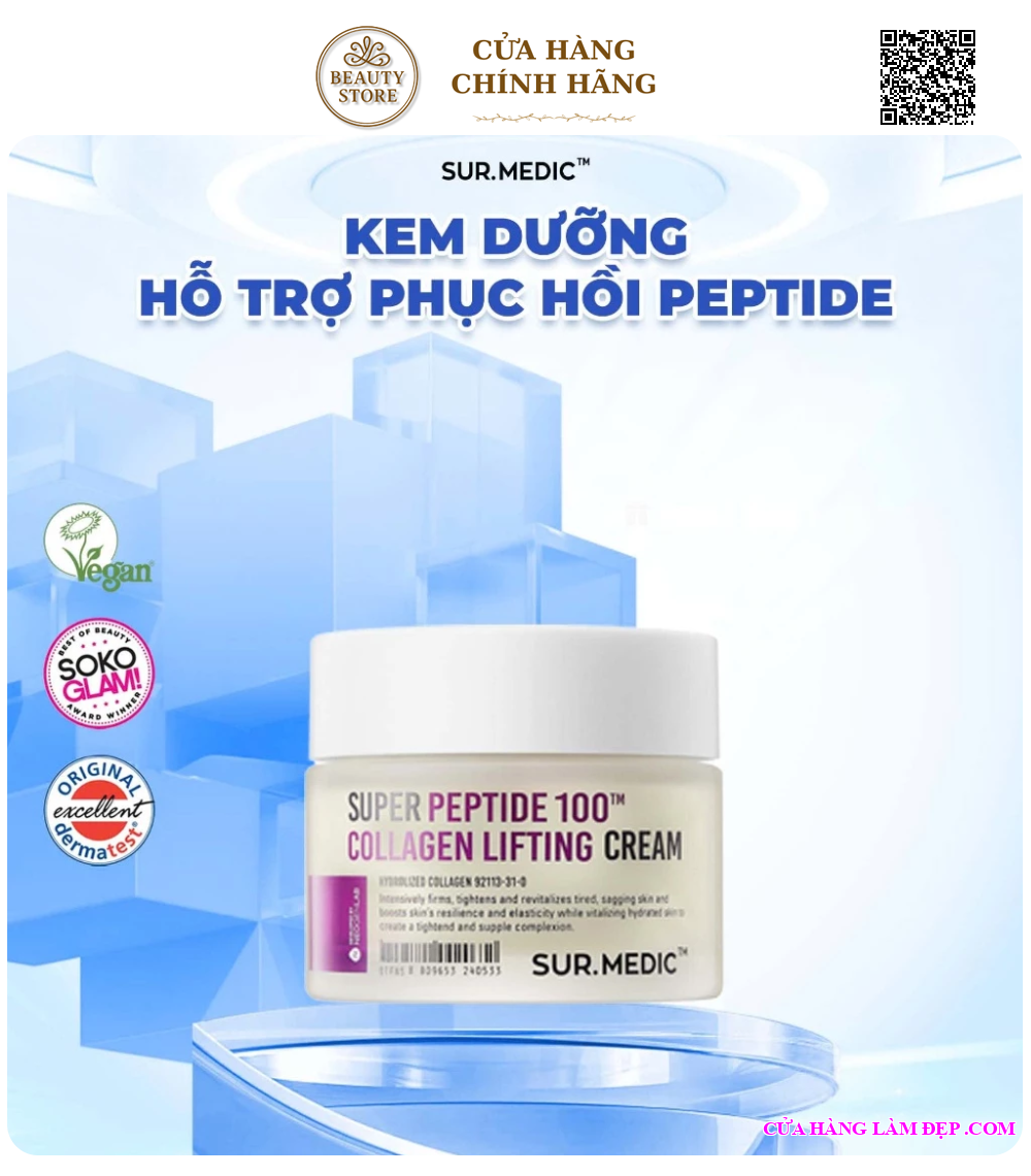 Tại hệ thống Cửa Hàng Làm Đẹp, sản phẩm SUR.MEDIC Super Peptide 100TM Collagen Lifting Cream Kem Dưỡng Phục Hồi Và Trẻ Khỏe Da 50ml từ Hàn Quốc có giá 680.000 VNĐ
