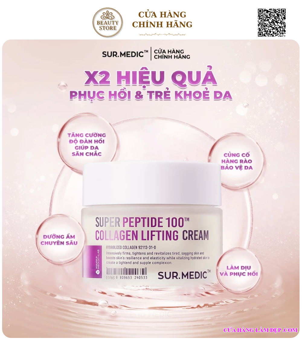 3. Công dụng Kem Dưỡng SUR.MEDIC Super Peptide 100TM Collagen Lifting Cream Phục Hồi Và Trẻ Khỏe Da