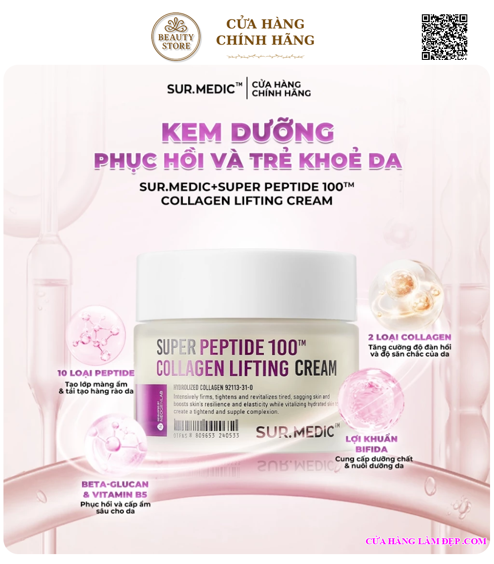 1. Kem Dưỡng SUR.MEDIC Super Peptide 100TM Collagen Lifting Cream Phục Hồi Và Trẻ Khỏe Da có tốt không?