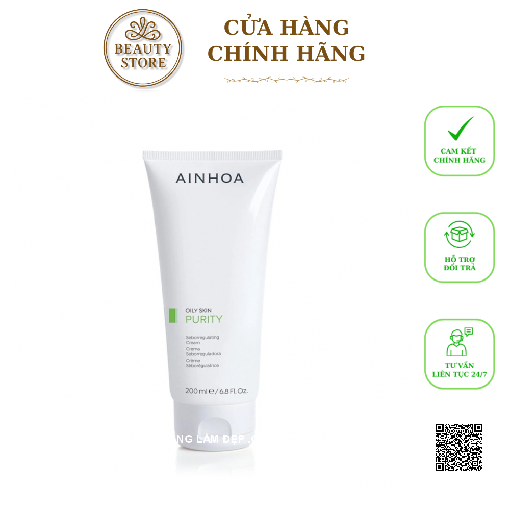 Kem Giảm Mụn, Kiềm Dầu, Se Khít Lỗ Chân Lông AINHOA Purity Seborregulating Cream là một sản phẩm chăm sóc da chuyên biệt dành cho làn da dầu và da mụn. Sản phẩm này được thiết kế để giải quyết các vấn đề thường gặp của da dầu như: tiết nhiều dầu, lỗ chân lông to, mụn đầu đen, mụn viêm và giúp da luôn sạch sẽ, mịn màng.