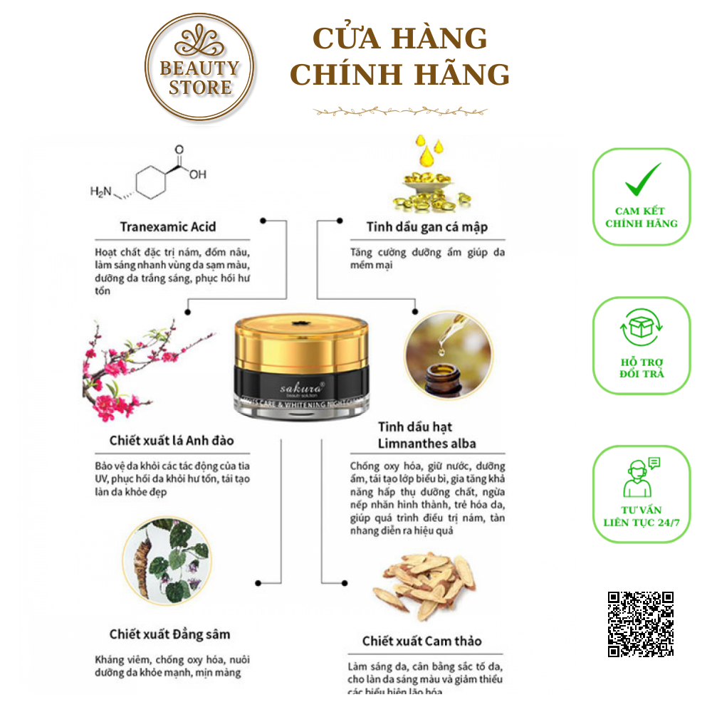 2. Thành Phần Kem Giảm Nám Cao Cấp Ban Đêm Sakura Spots Care & Whitening Night Cream Nhật Bản