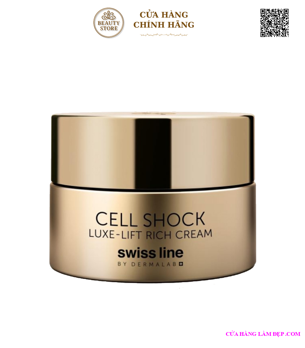 Cell Shock là dòng chăm sóc da lão hóa cao cấp đến từ thương hiệu Swissline của Thụy Sĩ. Chúng vận dụng công nghệ Hỗ Trợ Ngừa Lão Hóa độc quyền cùng các thành phần quý như vàng, collagen tinh khiết có khả năng vượt bậc trong việc chống oxy hóa của tế bào. Từ đó, các sản phẩm thuộc dòng Cell Shock luôn trở thành những đại diện Hỗ Trợ Ngừa Lão Hóa bán chạy trên thế giới, được hàng triệu phụ nữ ưa chuộng và tin tưởng. Một trong những sản phẩm Hỗ Trợ Ngừa Lão Hóa cho da khô và da thường là Swissline Cell Shock Luxe-lift Rich Cream. Kem Hỗ Trợ Ngừa Lão Hóa Nâng Cơ Swissline Cell Shock Luxe-Lift Rich Cream giúp nâng cơ, giảm nếp nhăn, cung cấp Vitamin làm tươi mới làn da, là lựa chọn lý tưởng cho những bạn có làn da bình thường, da lão hóa khô.