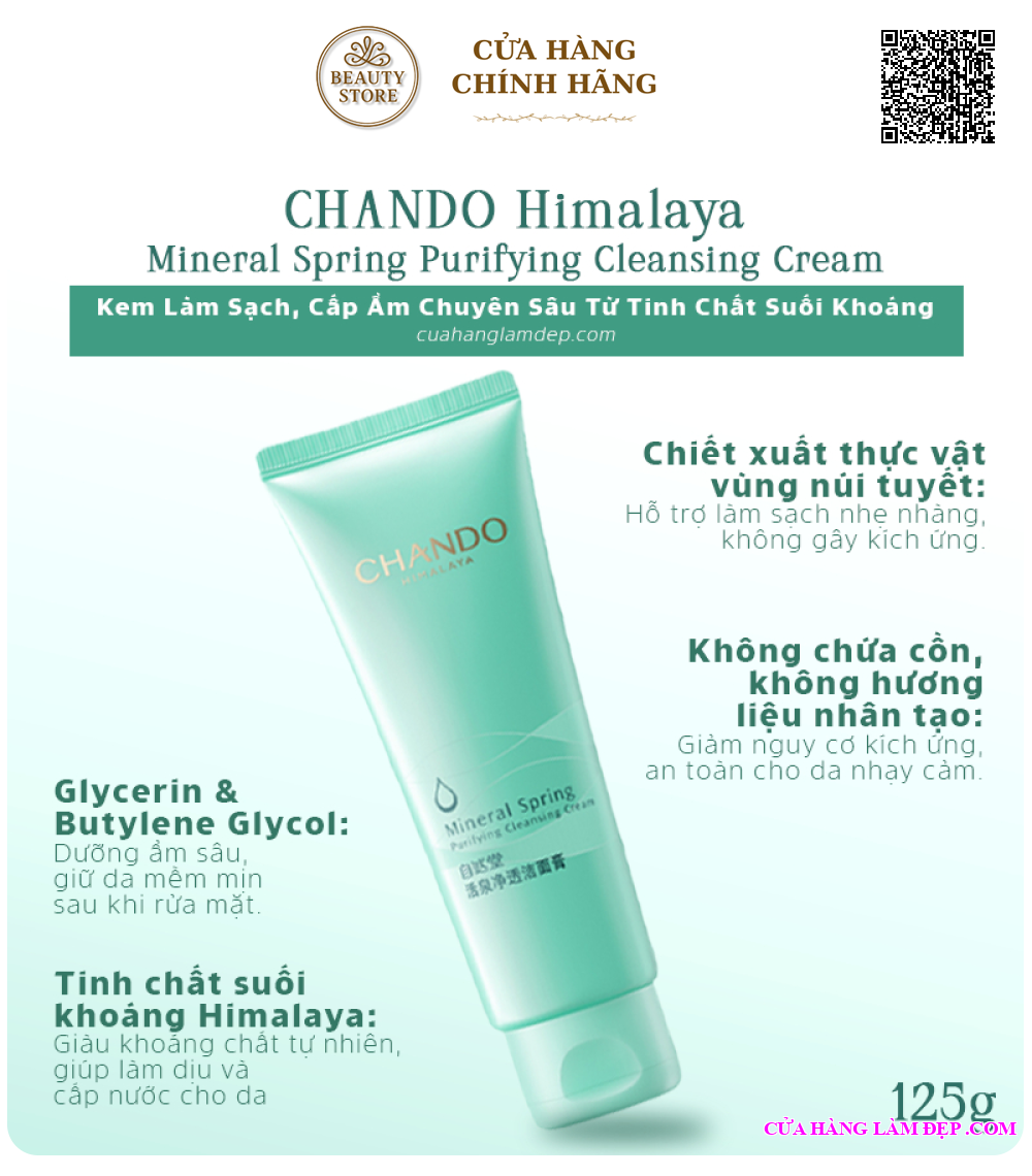 Tại hệ thống Cửa Hàng Làm Đẹp, sản phẩm Kem Làm Sạch CHANDO Himalaya Mineral Spring Purifying Cleansing Cream Cấp Ẩm Chuyên Sâu Từ Tinh Chất Suối Khoáng 125g Từ Trung Quốc có giá 280.000 VNĐ