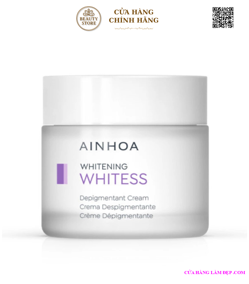 Kem Làm Trắng Da AINHOA Whitess Despigmentant Cream giúp giảm thiểu tình trạng tăng sắc tố da do ánh nắng mặt trời, tuổi tác và các yếu tố khác, đồng thời làm đều màu da. Giúp phục hồi độ đàn hồi và mịn màng của da, đồng thời cung cấp độ ẩm. Đã được kiểm nghiệm da liễu.