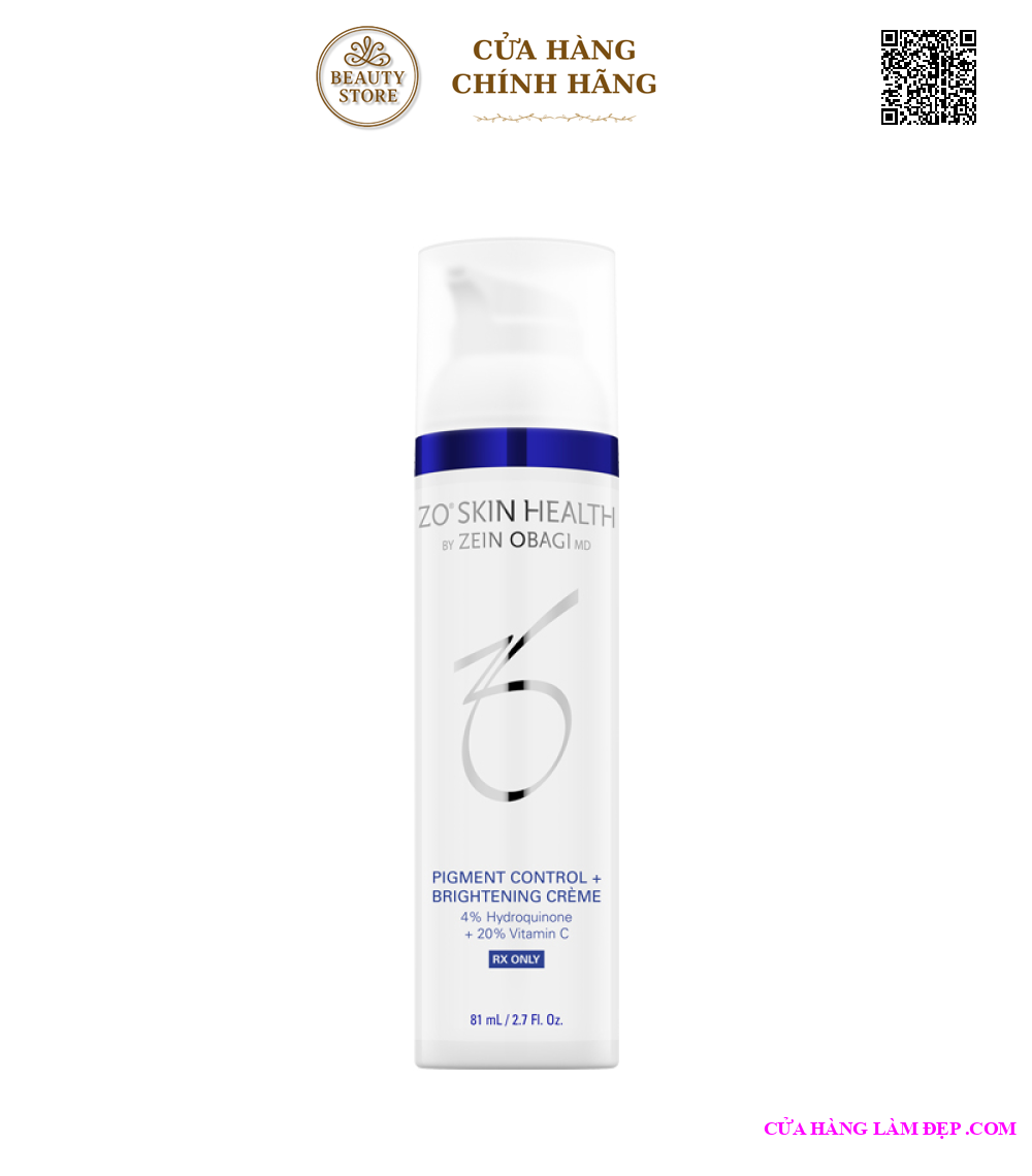 Mong muốn làn da trắng sáng nhưng da lại xuất hiện nhiều khuyết điểm như nám, tàn nhang và thâm mụn. Chinh phục làn da trắng sáng rạng rỡ càng khó hơn. Kem Mờ Nám Trắng Da ZO Skin Health Pigment Control + Brightening Crème chứa 4% hydroquinone và 20% vitamin C kết hợp đẩy mạnh ức chế melanin cân bằng tình trạng của sắc tố da một cách tối ưu. Từ đó, phục hồi làn da căng khỏe, trắng sáng và mịn màng hơn.