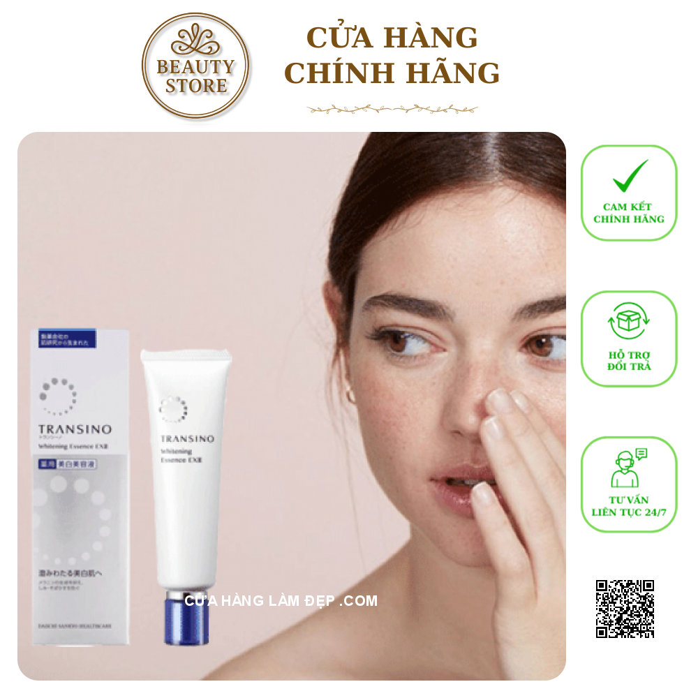 - Đồng thời thành phần dưỡng da cao cấp bên trong tuýp Kem Mờ Nám Whitening Essence EXII Transino song song dưỡng mịn và Hỗ Trợ Ngừa Lão Hóa cho da. Những trường hợp da không có nám, tàn nhang nhưng thâm sạm, không được sáng đều màu khi sử dụng serum Transino cũng rất nhanh chóng đạt được hiệu quả mong muốn
