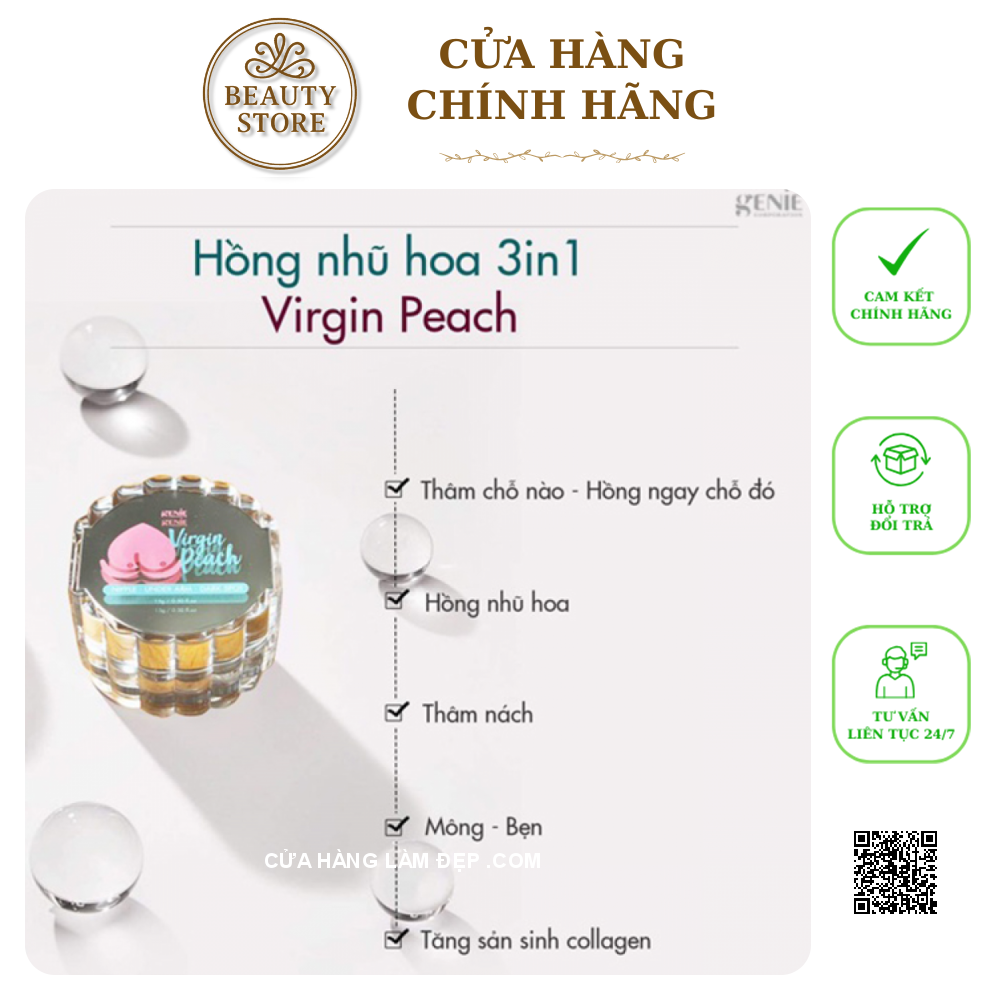 Tại Hệ thống Cửa hàng làm đẹp, Kem Mờ Thâm Vùng Kín Genie Virgin Peach 3 in 1 Hàn Quốc có giá : 750.000vnđ