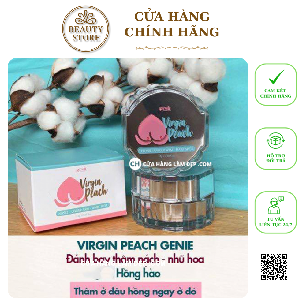 ➥ Kem Mờ Thâm Genie Virgin Peach loại bỏ sắc tố sẫm màu ở vùng nách, nhũ hoa và vùng kín