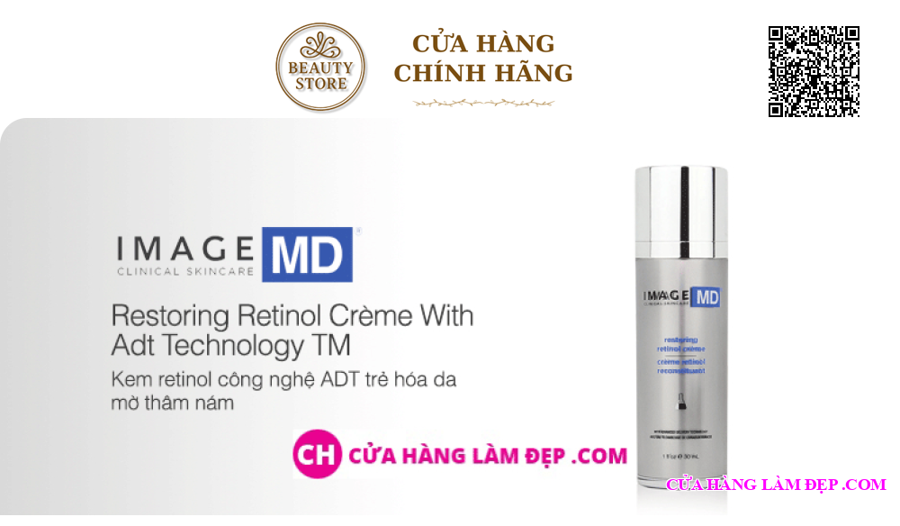 - Kem retinol công nghệ ADT trẻ hóa da, mờ thâm nám Image MD Restoring Retinol Crème With Adt Technology TM giúp giảm thiểu sự xuất hiện của nếp nhăn và làm nổi bật tông màu da, đồng thời làm sống lại làn da. Các thành phần hoạt tính được đưa vào các lớp sâu hơn của da thông qua công nghệ phân phối chăm sóc da tiên tiến IMAGE Skincare. Không chứa paraben. Được xây dựng bởi các bác sĩ phẫu thuật thẩm mỹ cho kết quả tối đa.