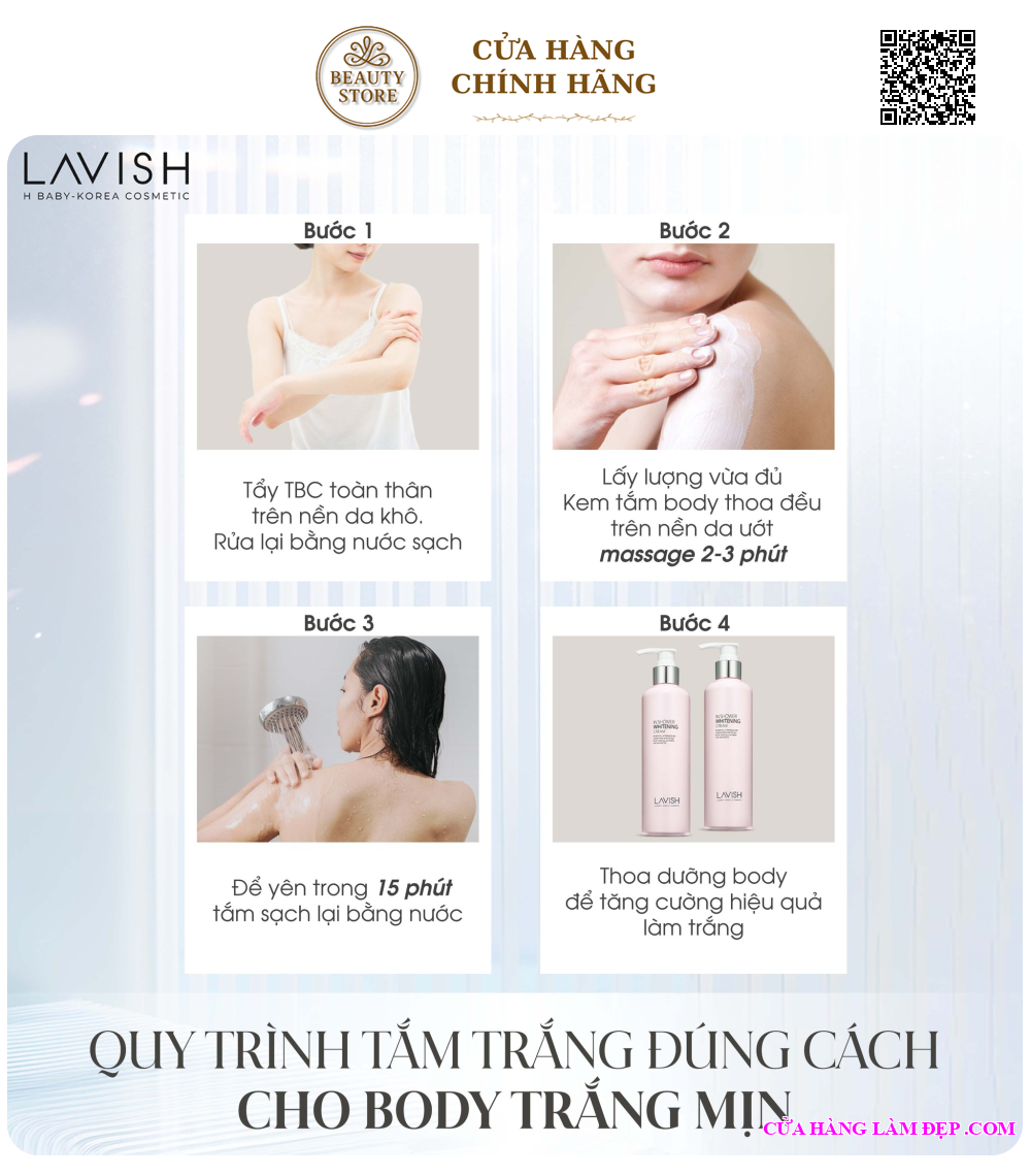 4. Hướng Dẫn Sử Dụng Kem Tắm Trắng Chuyên Sâu Dành Cho Body In Shower Whitening Cream Lavish H Baby
