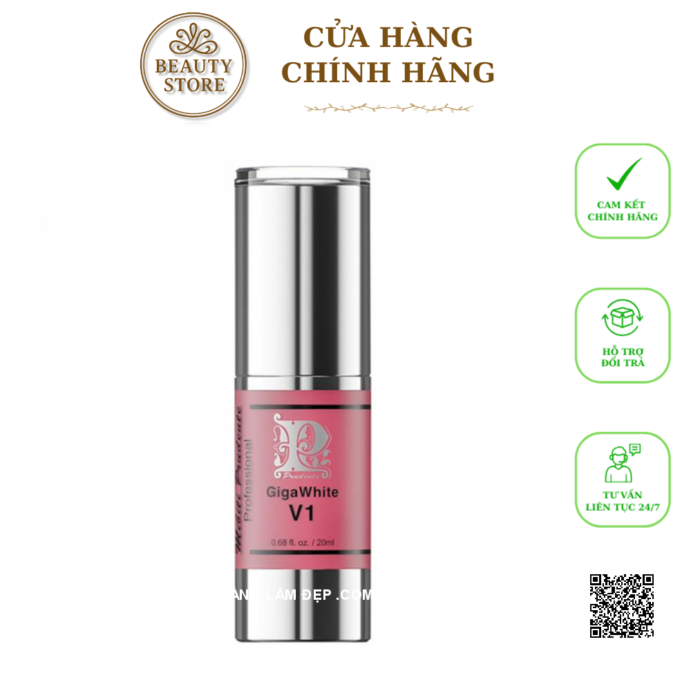 - GigaWhite V1 Mibiti Prudente Professional có tác dụng chống oxy hóa mạnh cho làn da và tăng sản xuất collagen.