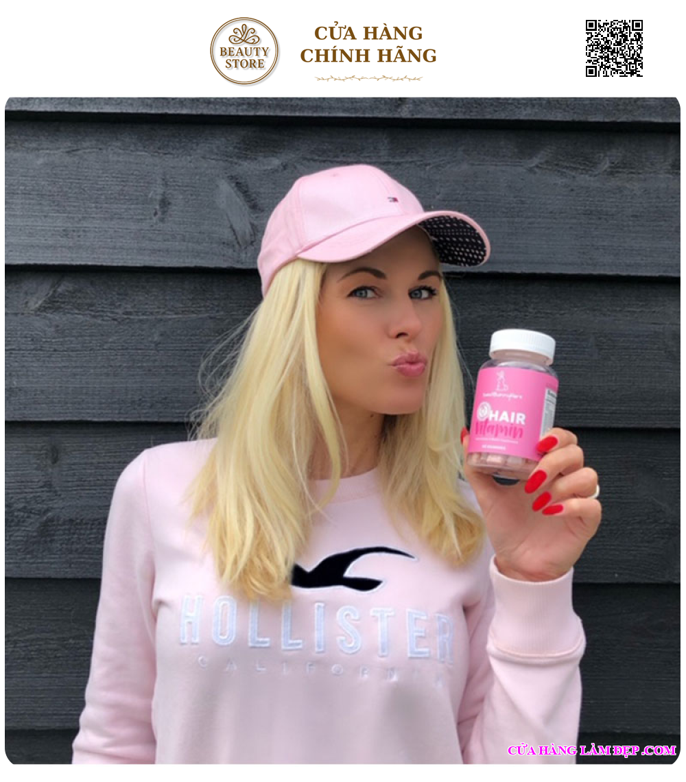 - Viên kẹo dẻo được thiết kế với 13 loại vitamin, dưỡng chất quan trọng kích thích mọc tóc và giúp tóc khỏe mạnh, suôn mượt, giảm khô xơ chẻ ngọn. Sản phẩm có hương vị của quả mâm xôi và việt quất, rất ngon, dễ ăn mỗi ngày.