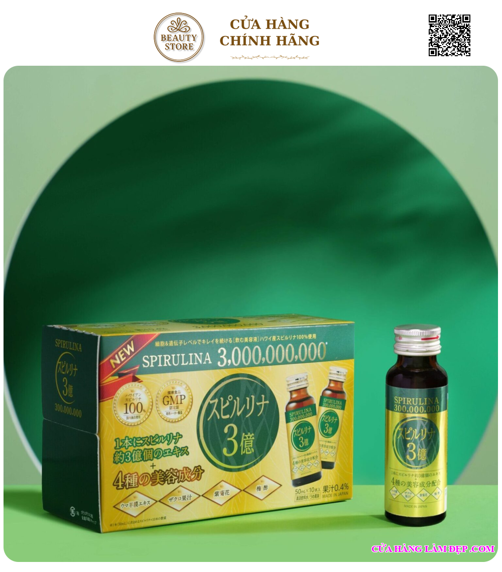 - 300 Triệu Nano Phân Tử Tảo Spirulina Hawaiian: tái tạo tế bào mới, tăng cường sức khỏe và làm chậm quá trình lão hóa.