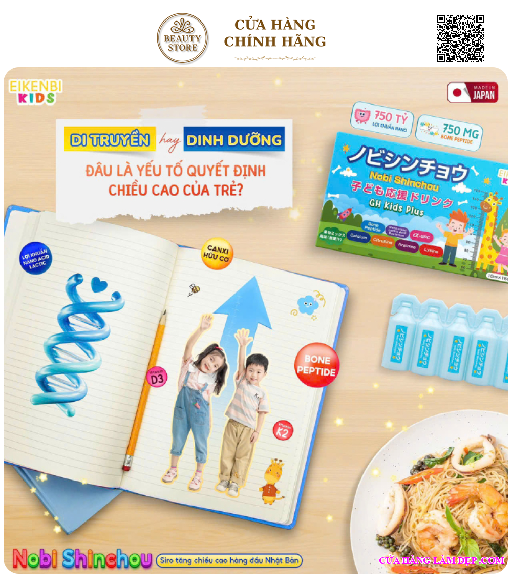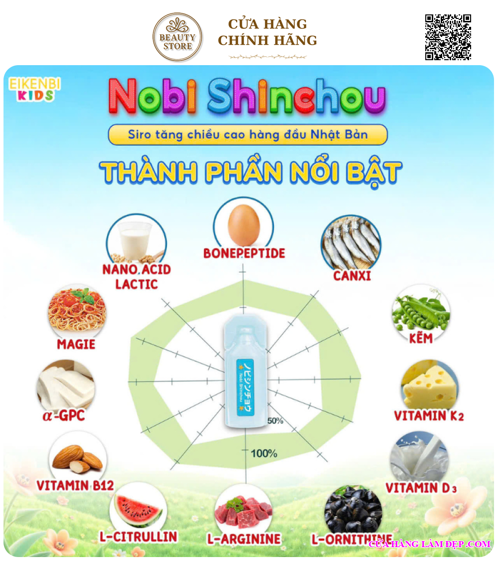 - Nobi Shinchou Eikenbi Kids GH Kids Plus Siro Tăng Chiều Cao : là sản phẩm hàng đầu từ Nhật Bản, được nghiên cứu kỹ lưỡng với công thức đột phá giúp trẻ phát triển chiều cao một cách tự nhiên và an toàn.
