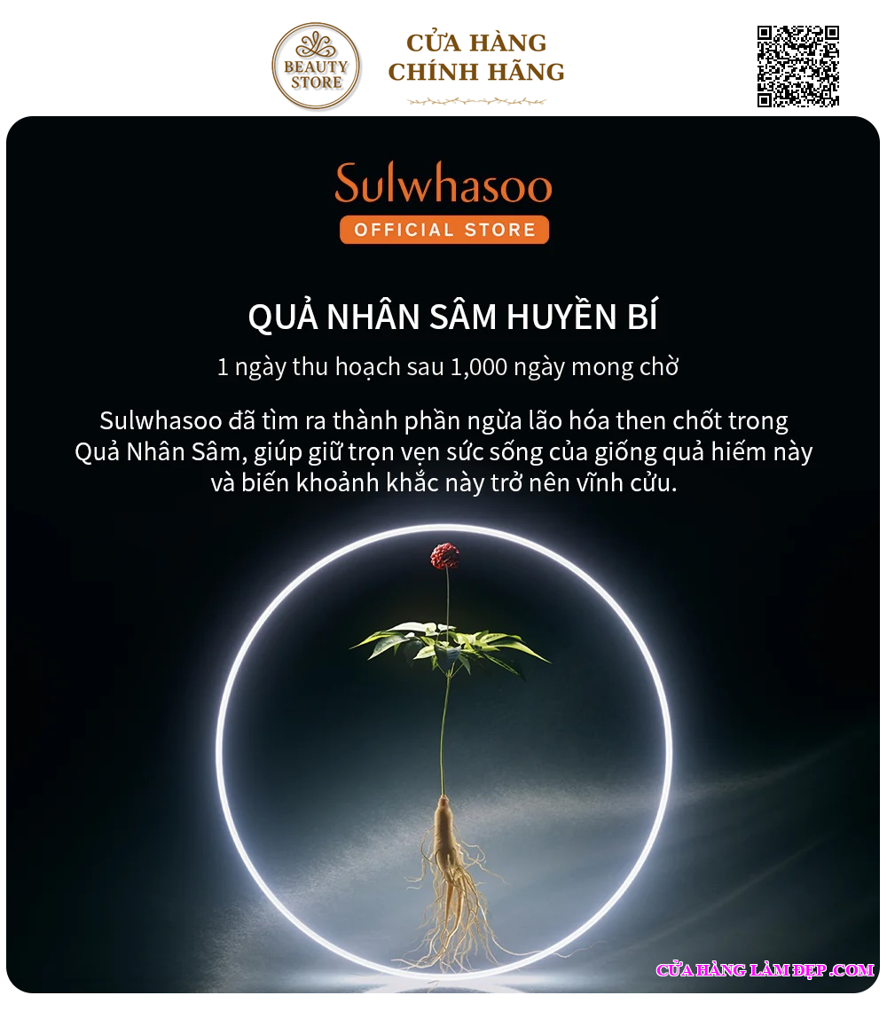 - Sulwhasoo đã tìm ra thành phần ngừa lão hóa trọng yếu trong Quả Nhân sâm, giúp giữ trọn vẹn sức sống của giống quả hiếm này và biến khoảnh khắc này trở nên vĩnh cửu.