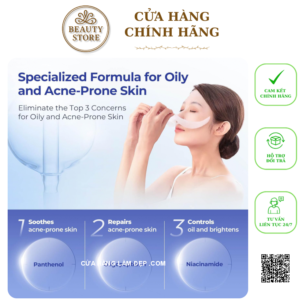 - Loại bỏ 3 mối quan tâm hàng đầu cho da dầu và dễ bị mụn: Được thiết kế đặc biệt cho da dầu và dễ bị mụn, sản phẩm này có tác dụng làm dịu, phục hồi và kiểm soát dầu hiệu quả đồng thời làm sáng da. Panthenol làm dịu da bị kích ứng, Oligopeptide-1 phục hồi da bị tổn thương và Niacinamide kiểm soát dầu và làm sáng da, phục hồi làn da sáng khỏe.
