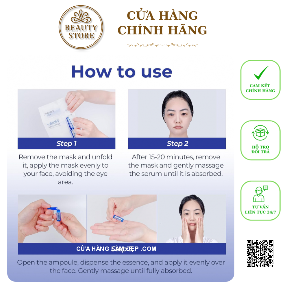 Hướng Dẫn Sử Dụng Mặt Nạ 2 Bước Làm Dịu Và Phục Hồi Da Mụn Chando Oligopeptide Oil-Control Ampoule Mask: