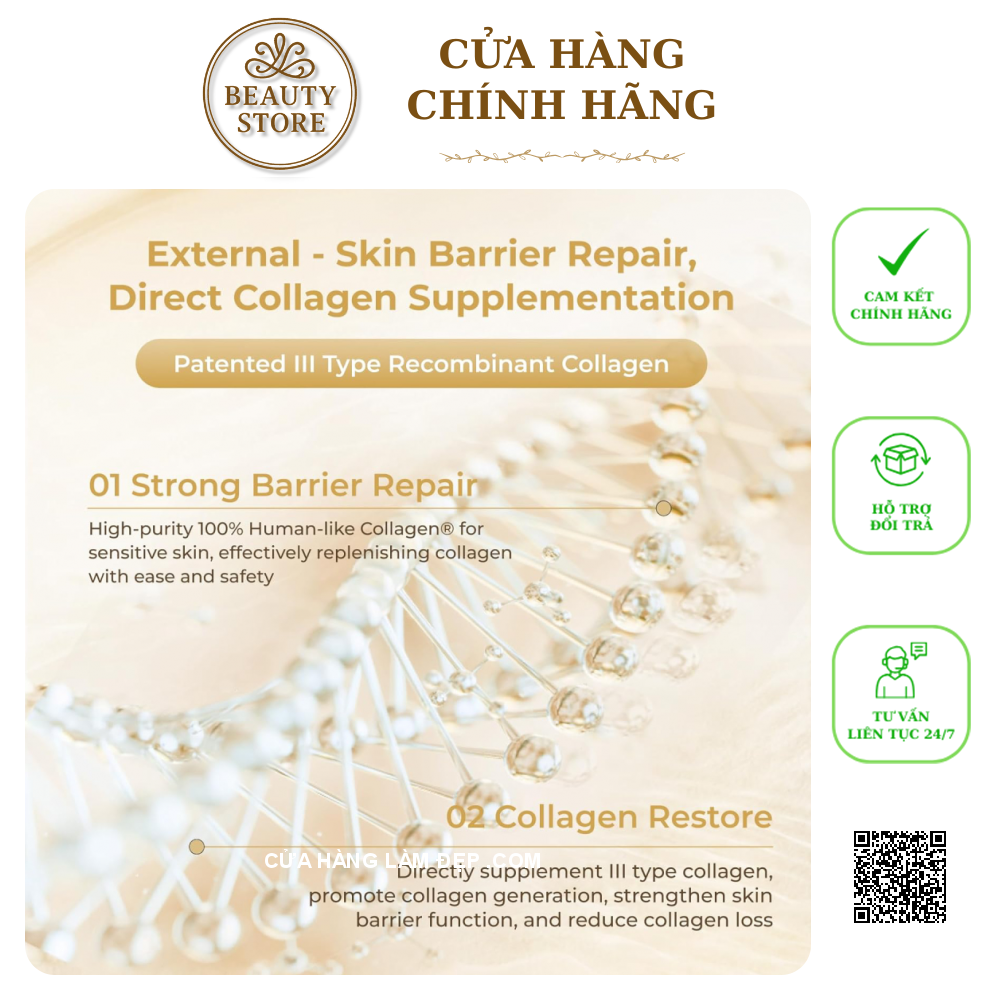- Sửa chữa hàng rào bên ngoài, thúc đẩy collagen bên trong: Tăng cường hàng rào bảo vệ da bằng cách bổ sung collagen giống người và kích thích sản xuất collagen loại I với Super Yeast. Đạt được sự tái tạo da trẻ trung trong vòng 28 giờ, sửa chữa các dấu hiệu lão hóa sớm và giảm mất collagen.