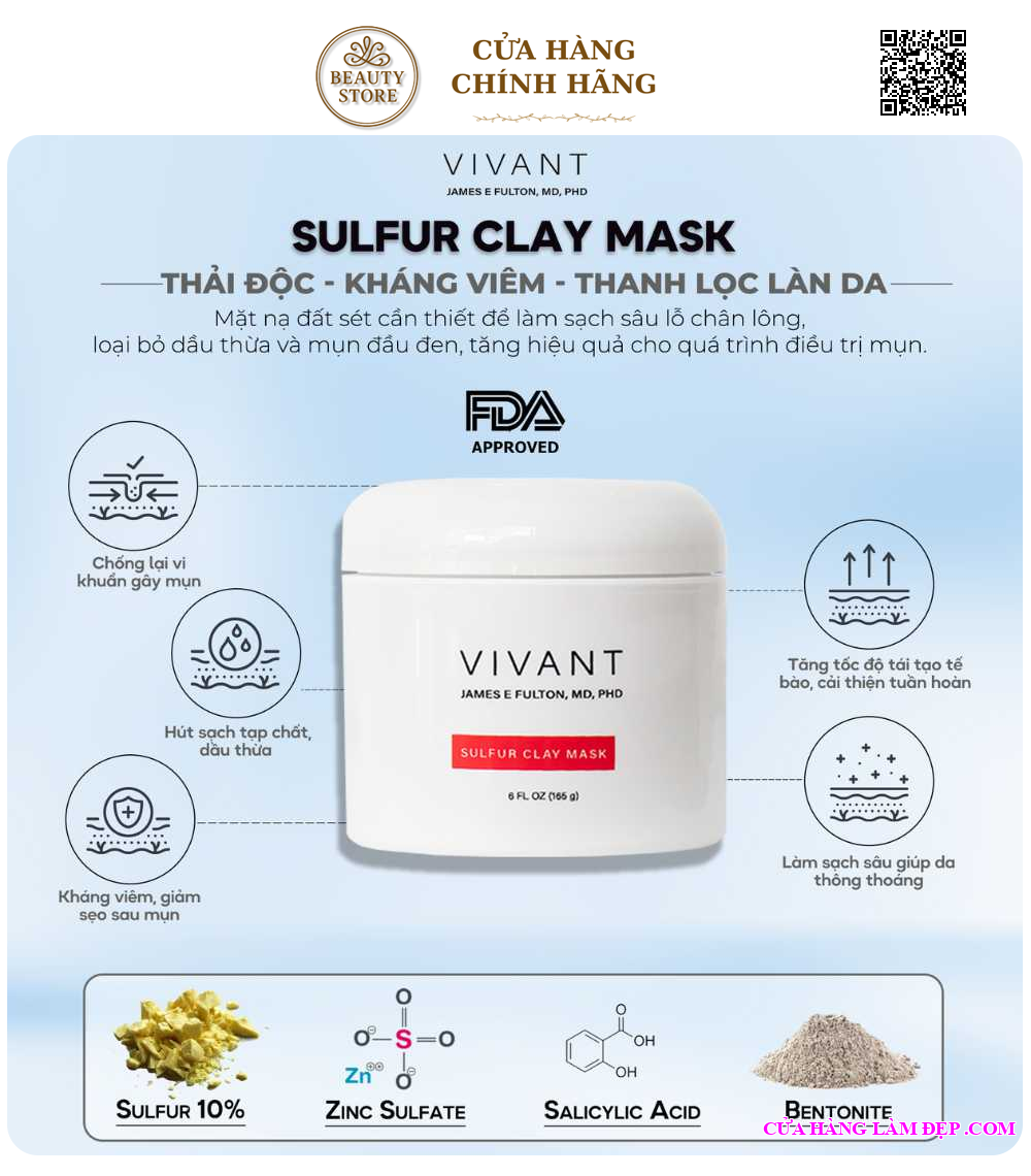 Giới Thiệu Mặt Nạ Đất Sét Thải Độc Vivant Skincare Sulfur Clay Mask: