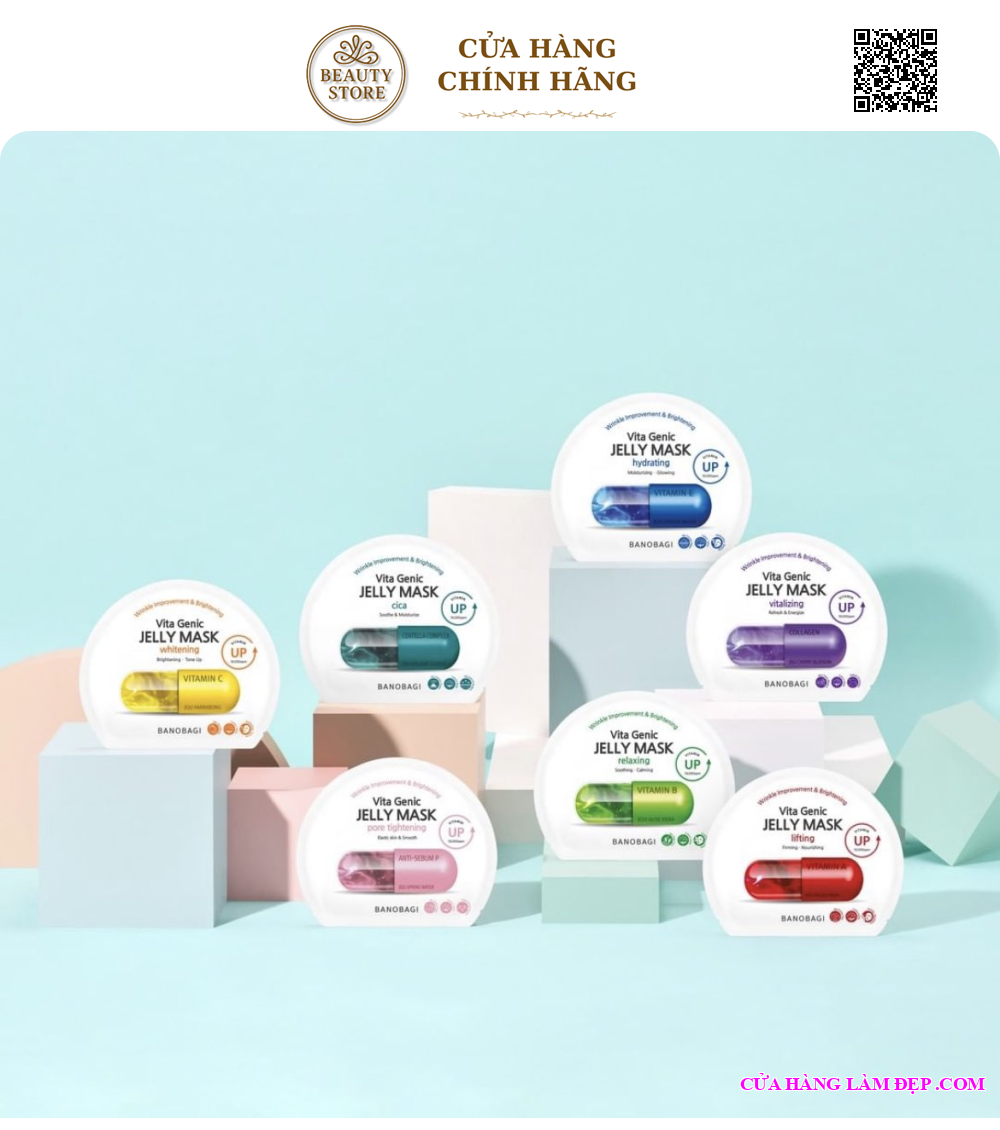 Banobagi Vita Genic Jelly Mask là dòng mặt nạ nổi tiếng đến từ thương hiệu dược mỹ phẩm Hàn Quốc Banobagi, được nghiên cứu bởi các bác sĩ da liễu thuộc bệnh viện thẩm mỹ Banobagi danh tiếng. Mỗi miếng mặt nạ chứa đến 0.000 ppm vitamin cô đặc cùng tinh chất dạng gel (jelly) đậm đặc, giúp nuôi dưỡng, phục hồi và cải thiện làn da chỉ sau 15–20 phút sử dụng.