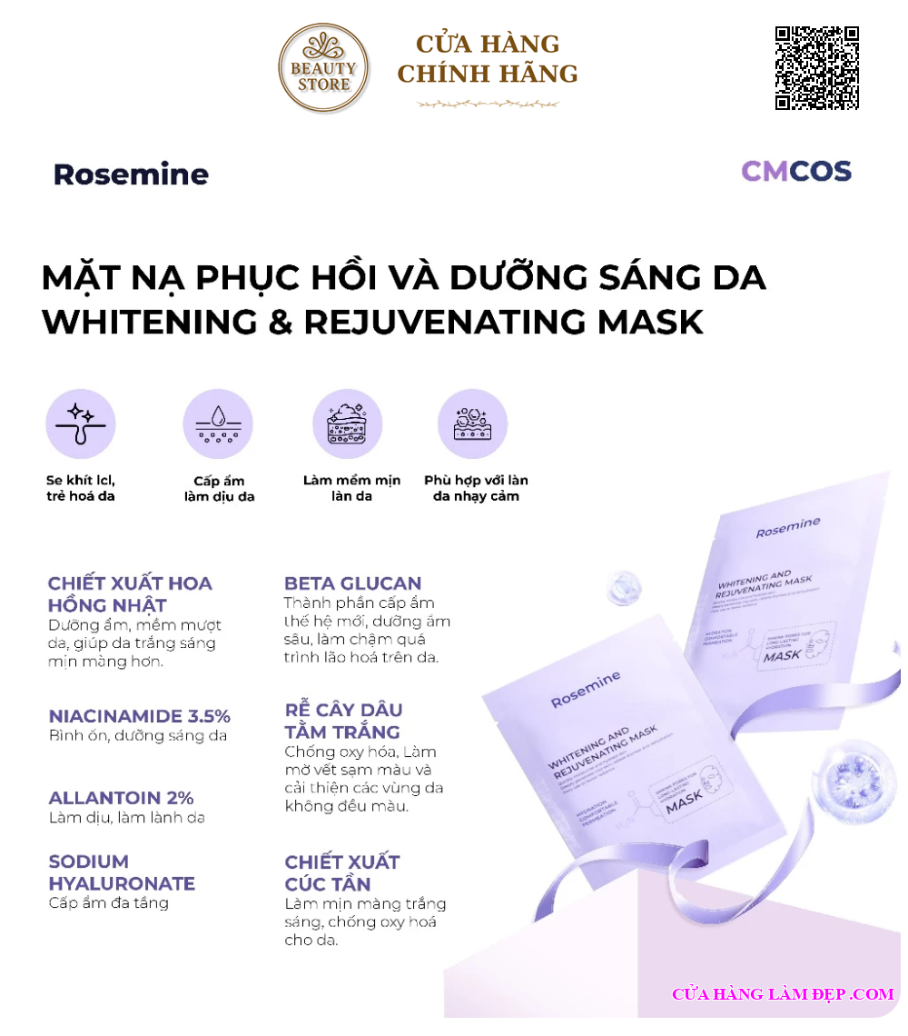 Công Dụng Mặt Nạ Dưỡng Trắng Da Rosemine Whitening and Rejuvenating Mask: