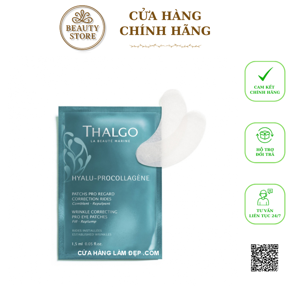 Mặt Nạ Làm Đầy Nếp Nhăn Vùng Mắt Thalgo Wrinkle Correcting Pro Eye Patches dòng mặt nạ mới của hàng Thalgo đến từ Pháp. Sản phẩm mặt nạ dạng miếng, làm đầy nếp nhăn và giúp xóa đi các dấu hiệu lão hóa da. Mặt nạ mắt Thalgo Wrinkle Correcting Pro Eye Patches được lấy cảm hứng từ salon chuyên nghiệp giàu Hyaluronic Acid liên kết chéo, giúp làm mờ nếp nhăn vùng bọng mắt trong vòng 10 phút và kéo dài hiệu suất cả ngày.