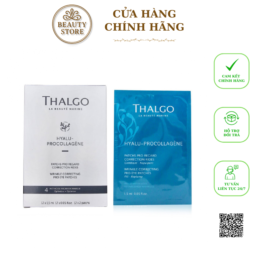 Mặt Nạ Làm Đầy Nếp Nhăn Vùng Mắt Thalgo Wrinkle Correcting Pro Eye Patches dòng mặt nạ mới của hàng Thalgo đến từ Pháp. Sản phẩm mặt nạ dạng miếng, làm đầy nếp nhăn và giúp xóa đi các dấu hiệu lão hóa da. Mặt nạ mắt Thalgo Wrinkle Correcting Pro Eye Patches được lấy cảm hứng từ salon chuyên nghiệp giàu Hyaluronic Acid liên kết chéo, giúp làm mờ nếp nhăn vùng bọng mắt trong vòng 10 phút và kéo dài hiệu suất cả ngày.
