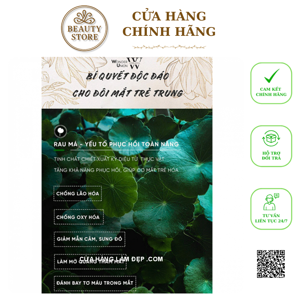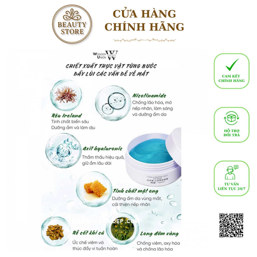 - Mặt Nạ Mắt Hydra-Essential Tight Eye Mask Weilaiya chứa thành phần rau má, long đởm vàng, rễ cốt khí củ, Niacinamide, Hyaluronic Acid, Carrageenan... giúp giảm nhăn, làm săn chắc và nâng cơ vùng mắt, loại bỏ sưng bọng mắt, làm mờ quầng thâm..., trả lại cho bạn làn da mắt mịn màng và sáng khỏe.