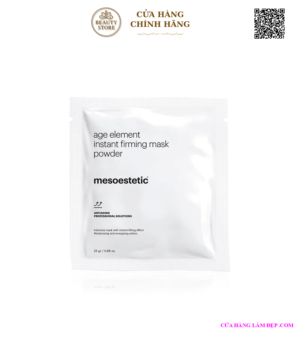 - Mặt Nạ Nâng Cơ Mesoestetic Antiaging Professional Solutions Age Element Instant Firming Mask chứa chiết xuất từ tảo biển, cá trứng muối quý hiếm và đất tảo cát. Tạo nên một bước đột phá mà một sản phẩm chăm sóc da có thể có. Đây là mặt nạ nâng cơ da dưỡng ẩm chuyên sâu, giúp dưỡng da căng mượt, đàn hồi chỉ sau một lần đắp.
