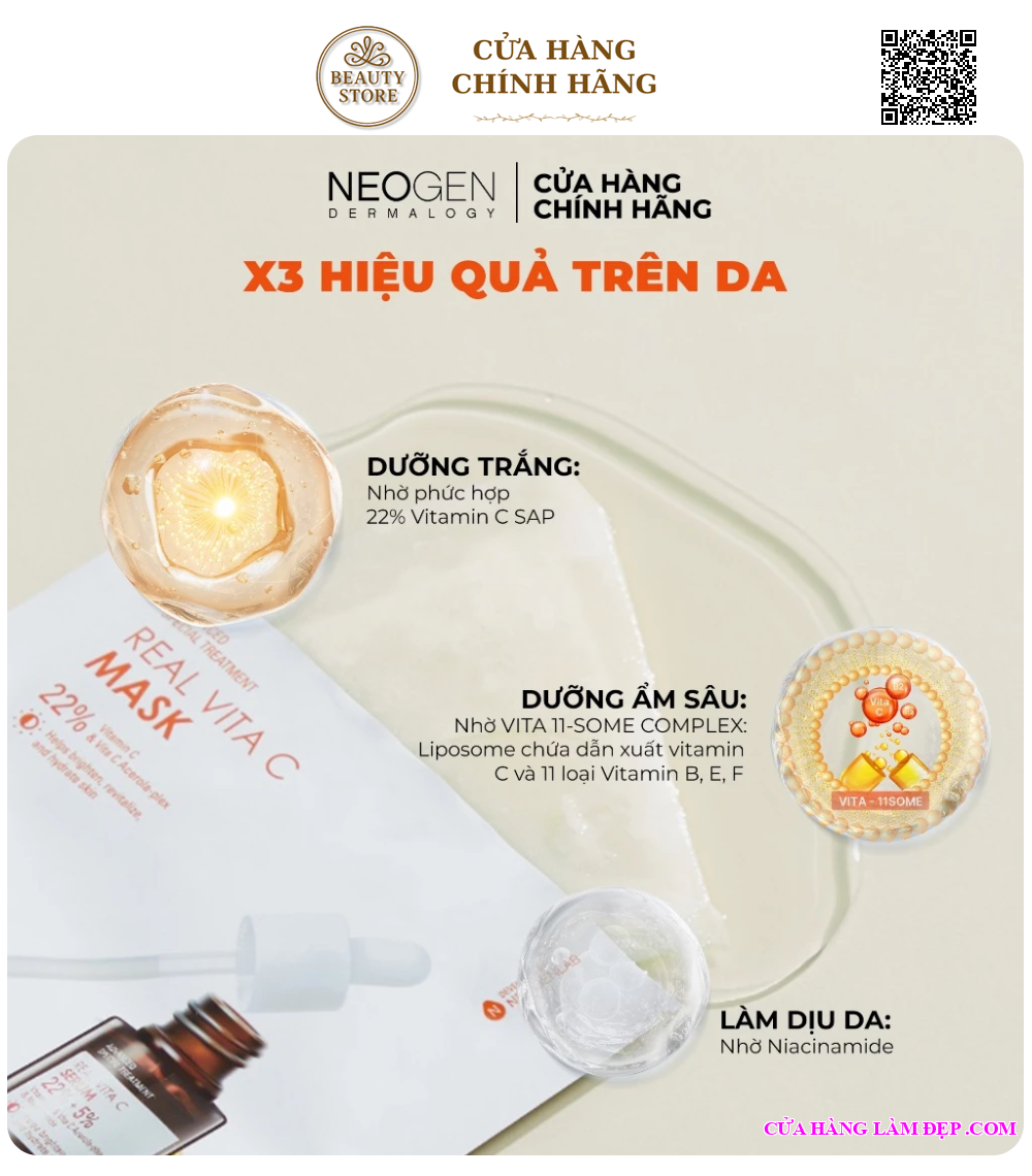 Neogen Dermalogy Real Vita C 22% Mask được khách hàng của Hệ Thống Cửa Hàng Làm Đẹp đánh giá cao.