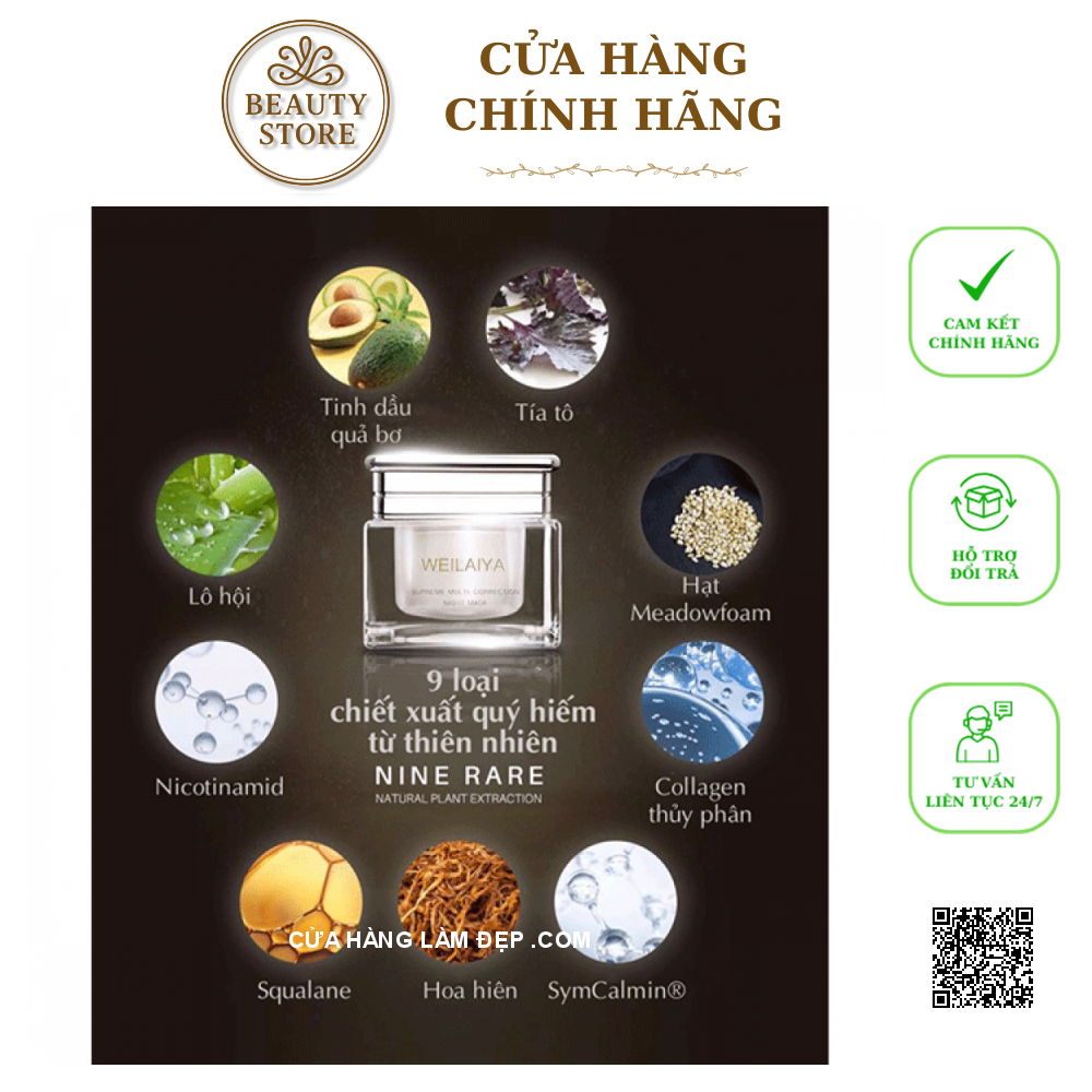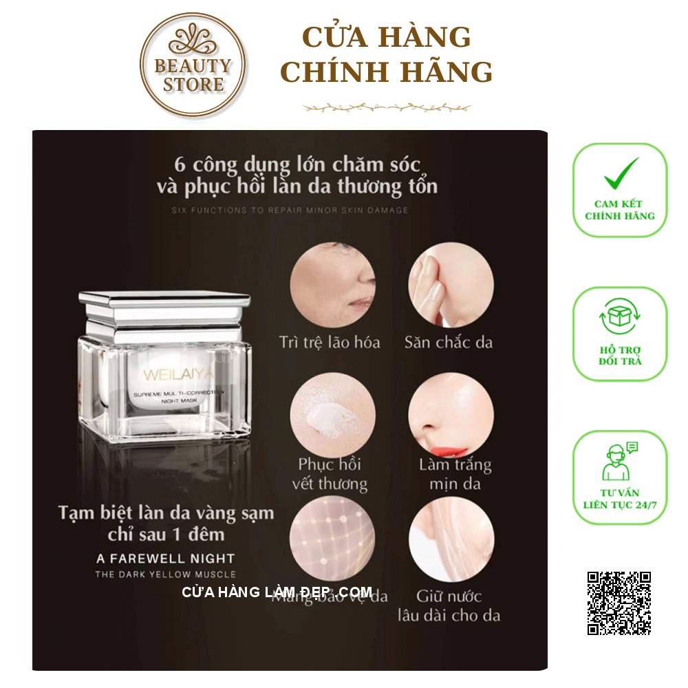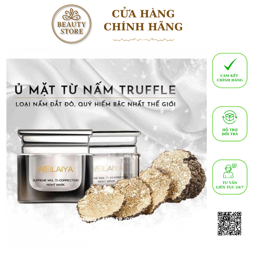 - Theo thời gian và những tác động bên ngoài môi trường, quá trình lão hoá da sẽ đến bất cứ lúc nào và làm da bạn xấu đi nếu bạn không biết cách chăm sóc da hợp lý. Mặt Nạ Ngủ Nấm Truffle Supreme Multi-Correction Night Mask Weilaiya là giải pháp tuyệt vời thành phần chiết xuất giàu dưỡng và hoạt tính từ nấm Truffle – loại nấm đắc đỏ bậc nhất thế giới, được mệnh danh là "viên kim cương đen" đắc giá, có tác dụng chống oxy hóa mạnh, cải thiện độ đàn hồi của da, tạo lớp khiên bảo vệ da trước ánh nắng mặt trời, tái tạo lớp màng hydrolipid, giảm lão hóa da, xóa nếp nhăn, kích thích tuần hoàn và trao đổi chất dưới da, cấp ẩm sâu, kháng khuẩn, làm đầy rãnh nhăn, dưỡng mịn và đều tông màu da,…