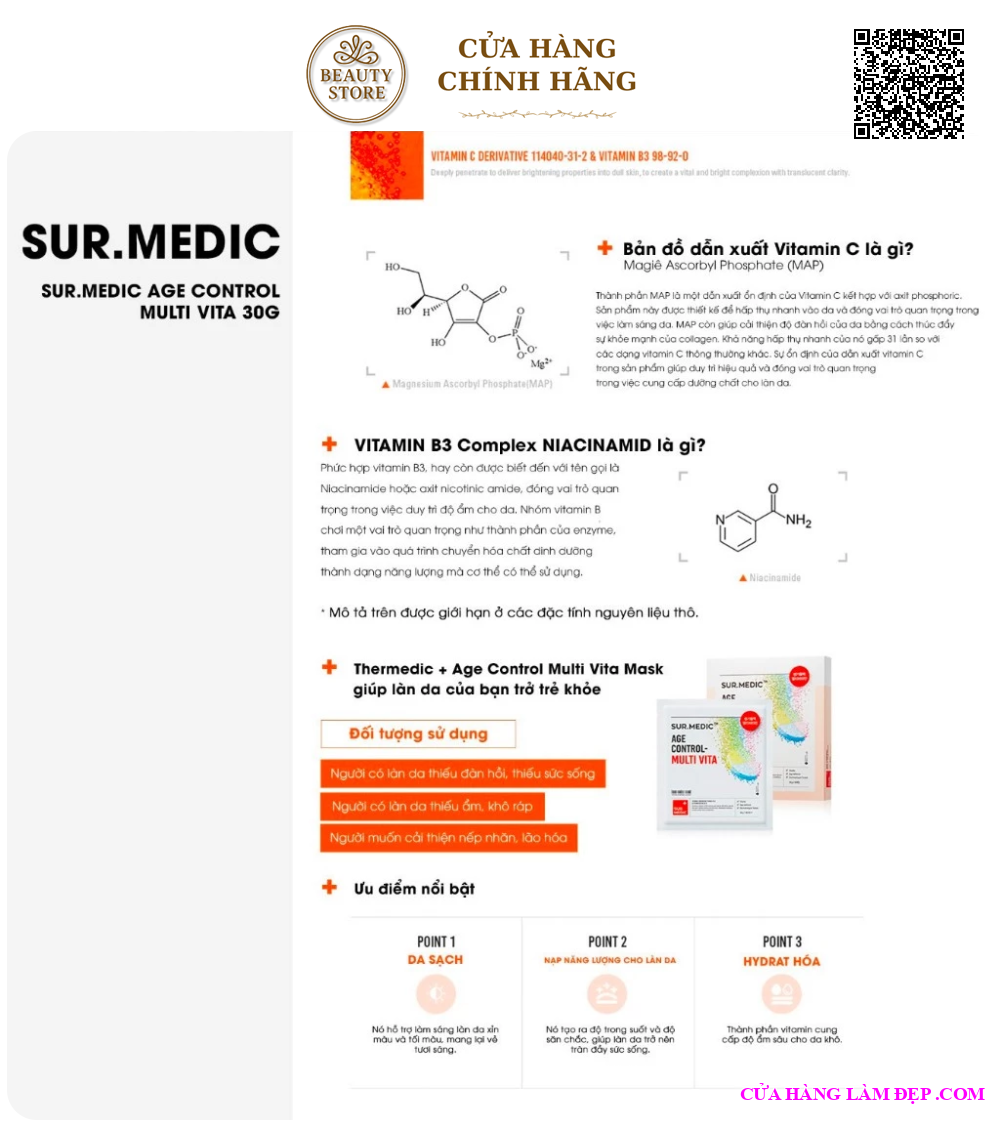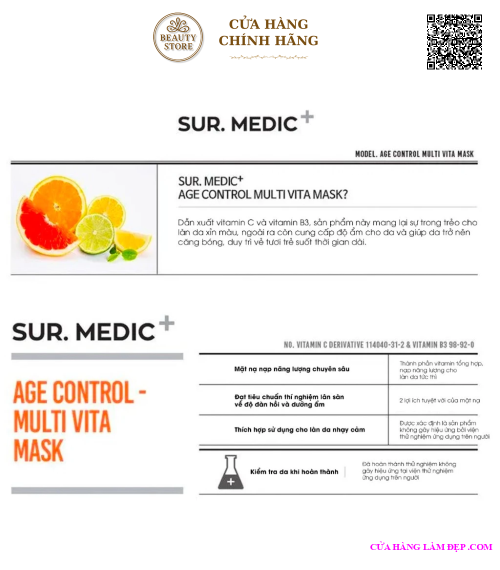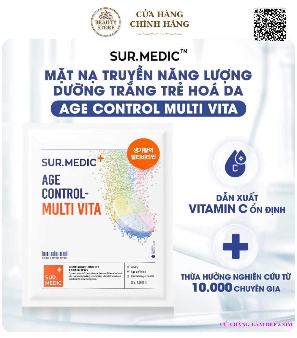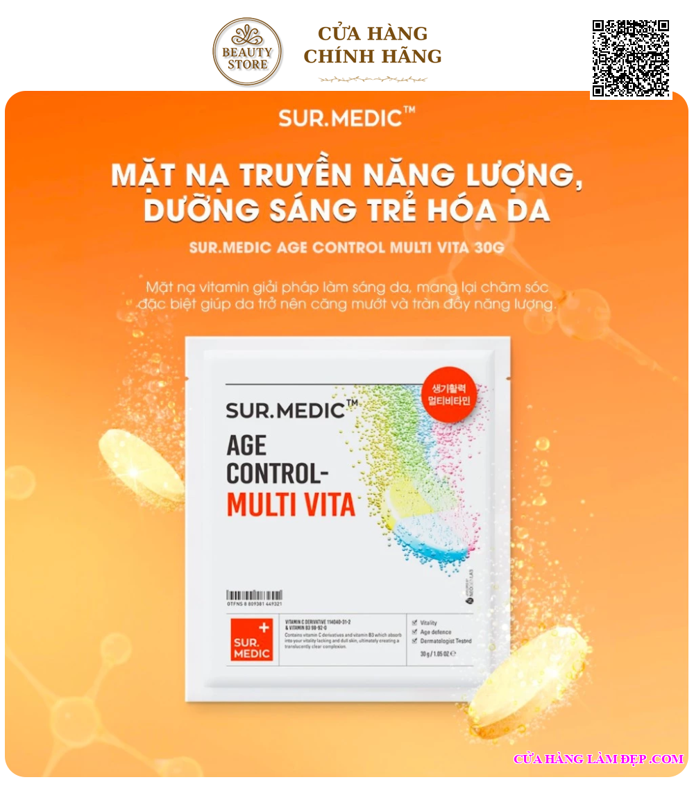 SUR.MEDIC Age Control Multi Vita Mask Mặt Nạ Mặt Nạ Hỗ Trợ Ngừa Lão Hóa Hỗ Trợ Cung Cấp Multi Vitamin 30g/miếng hộp 10 miếng từ Hàn Quốc được khách hàng của Hệ Thống Cửa Hàng Làm Đẹp đánh giá cao.