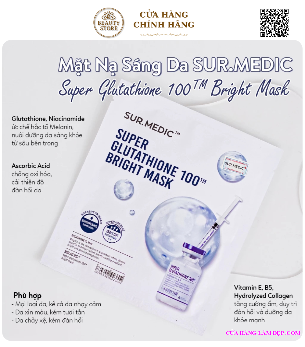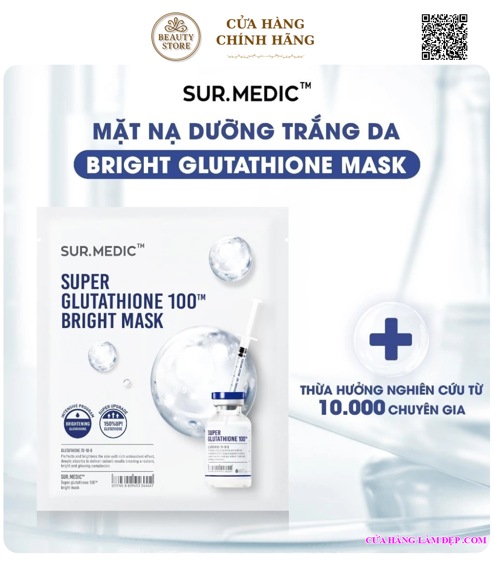 Mặt Nạ SUR.MEDIC+ Bright Glutathione Mask Hỗ Trợ Dưỡng Trắng Da 30g/miếng Hộp 10 Miếng Từ Hàn Quốc được khách hàng của Hệ Thống Cửa Hàng Làm Đẹp đánh giá cao.