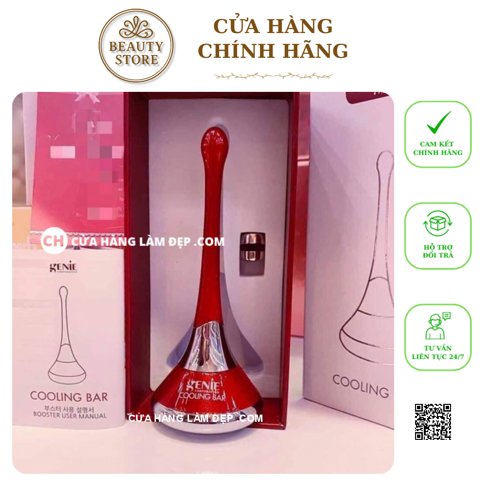 -Máy di điện Genie Cooling Bar giúp tăng khả năng hấp thu dưỡng chất gấp 50 lần, nuôi dưỡng làn da khỏe mạnh, săn chắc , trẻ hóa, làm mờ nếp nhăn, xua tan bọng mắt, tạo hình V-line, chống chảy xệ, làm dịu da sau phẫu thuật thẩm mỹ