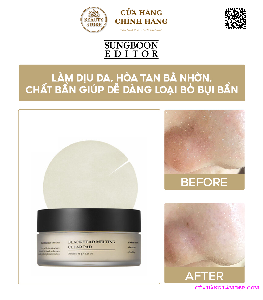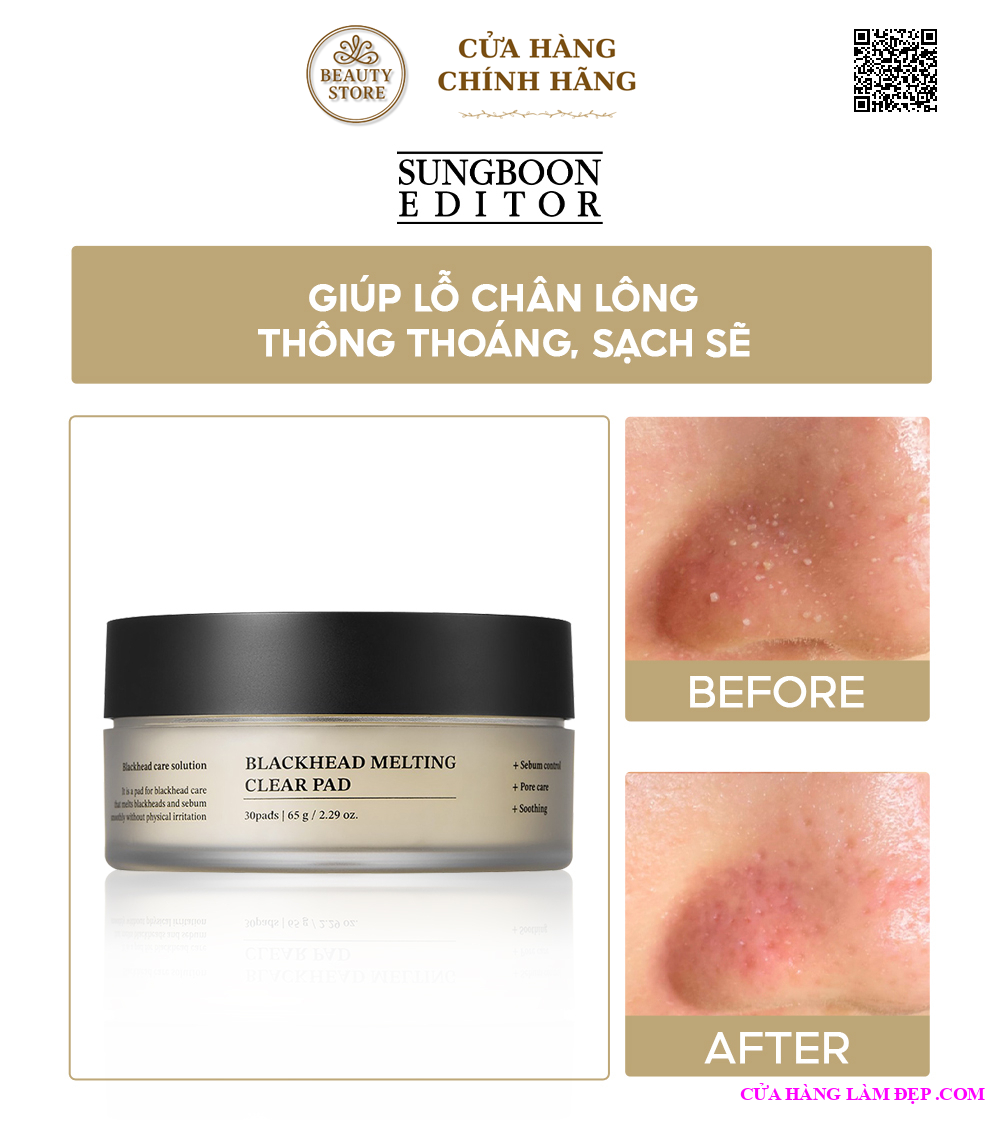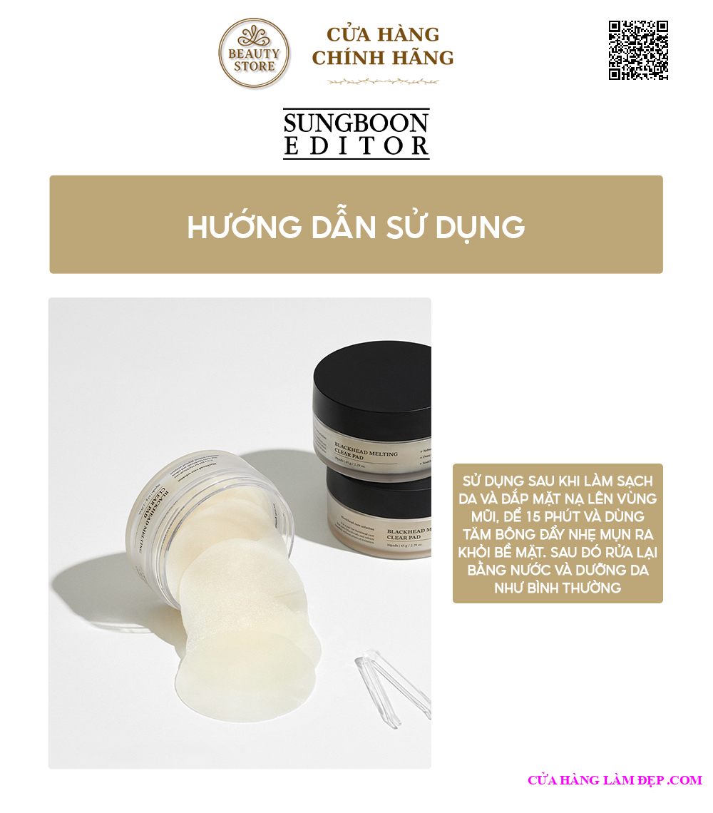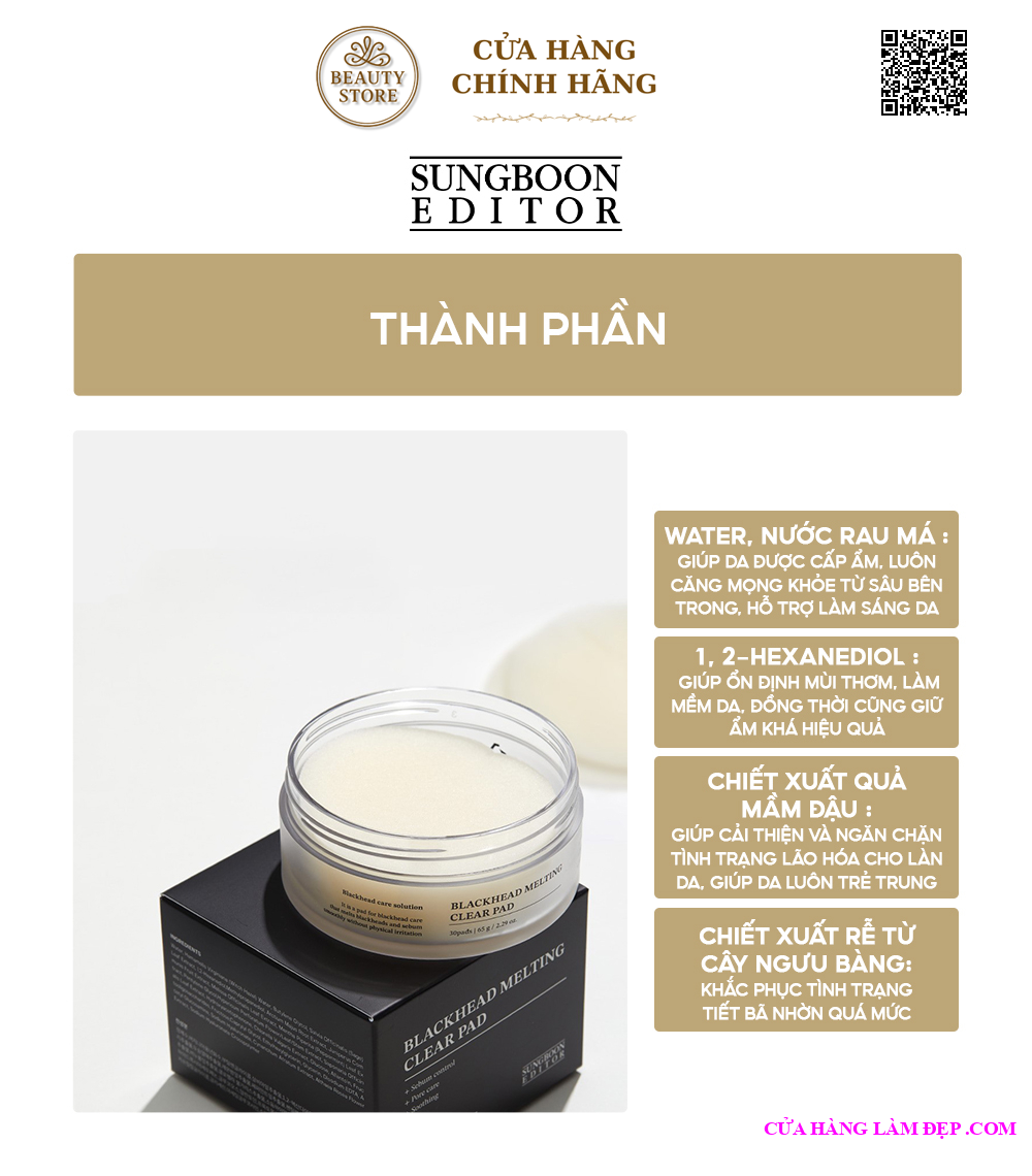 - Bạn có thể tìm mua Miếng Làm Sạch Mụn Đầu Đen Sungboon Editor Blackhead Melting Clear Pad qua website: cuahanglamdep.com