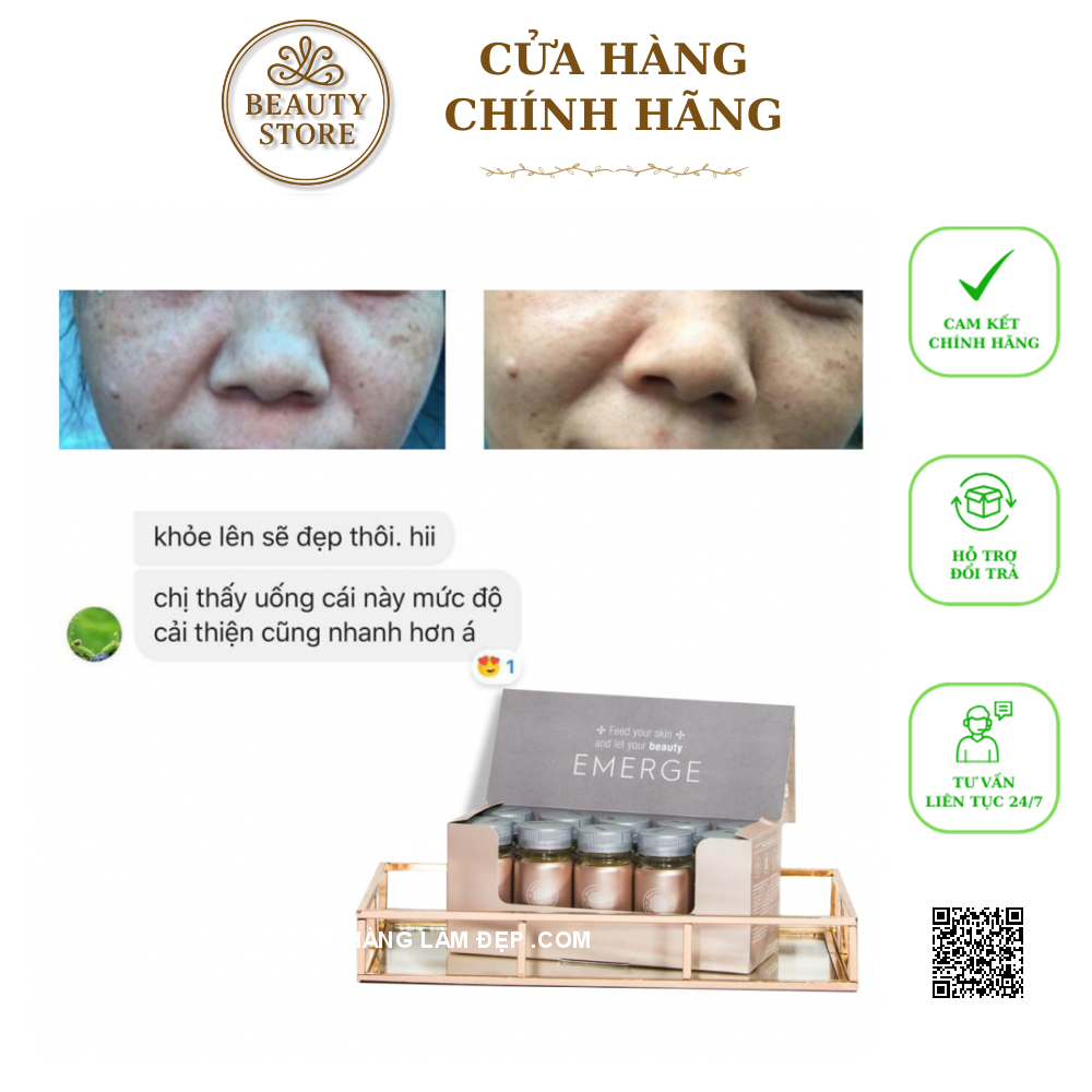 - Giai đoạn 4: Lúc này da không chỉ khỏe, sáng hơn, vùng nám dần mờ đi rõ rệt, hạn chế dị ứng, mẩn đỏ mà còn được bảo vệ tối đa khi tiếp xúc với ánh sáng xanh, tia cực tím, giúp da không bị xỉn màu trở lại hay sần sùi thô ráp. Không chỉ làn da khỏe, mà sức khỏe cũng cải thiện, móng tóc thì chắc khỏe hơn.