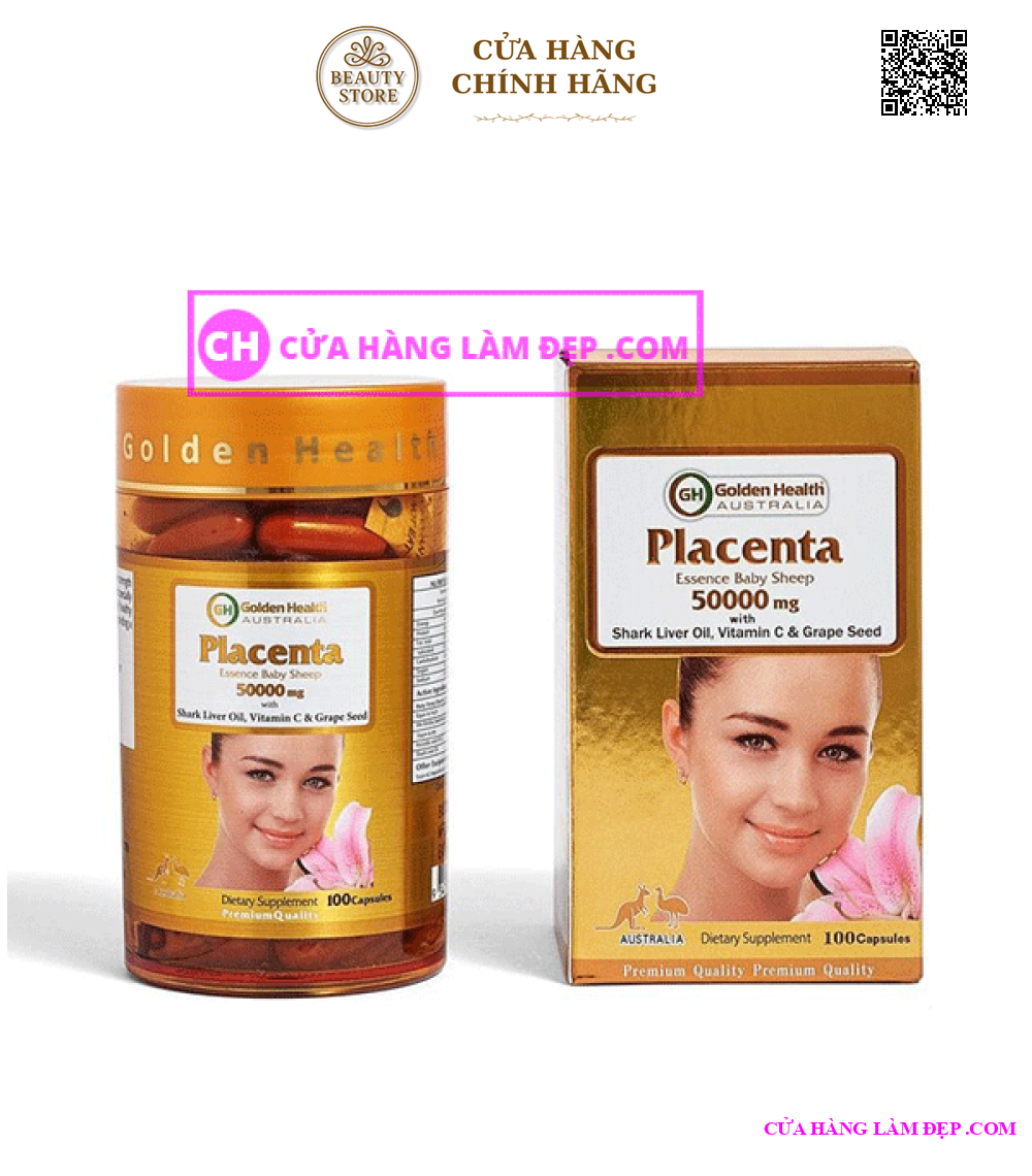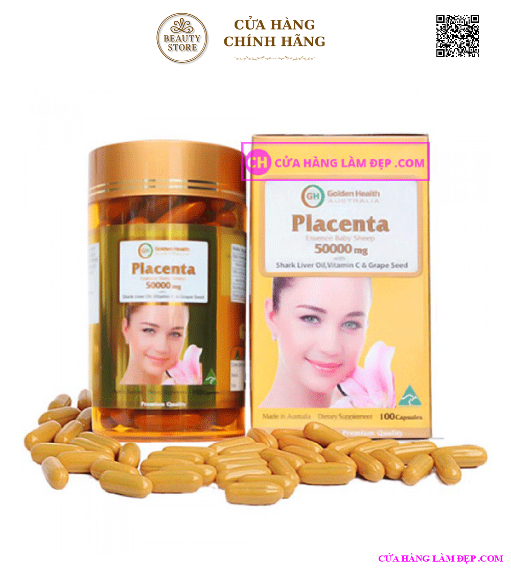 - Viên nang nhau thai cừu Golden Health Placenta 50.000mg là một dạng siêu viên nang chứa hàm lượng dưỡng chất cực cao. Tuy bé nhưng nó được tích hợp từ các thành phần chứa dầu gan cá mập, Vitamin C, hạt nho và các thành phần được chiết xuất từ các bộ phận của cừu.