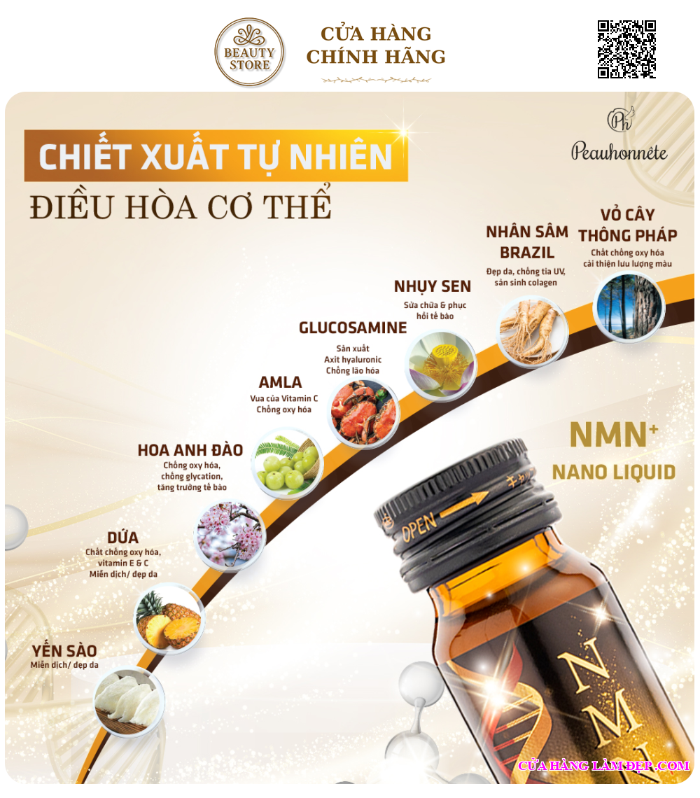 - Bạn có thể tìm mua Nước Uống Thanh Xuân Trường Thọ Peauhonnete NMN+ Nano Liquid qua website: cuahanglamdep.com