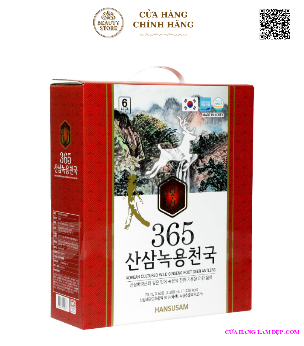 - Bạn có thể tìm mua Nước Chiết Xuất Nhung Hươu Hồng Sâm Núi Hansusam 365 Korean Cultured Wild Ginseng Root Deer Antlers qua website: cuahanglamdep.com