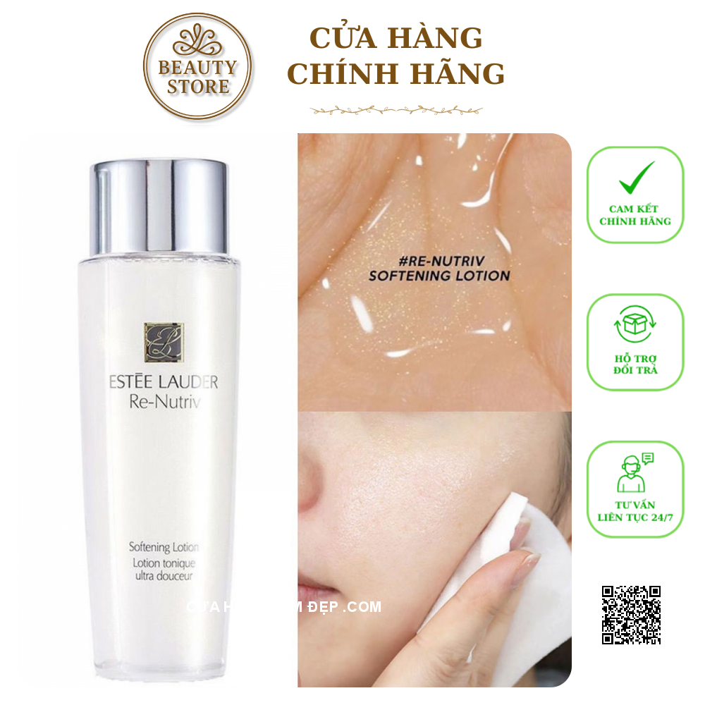 - Được thiết kế với những tinh chất vàng, Nước Hoa Hồng Estee Lauder Re-Nutriv Softening Lotion loại bỏ những chất đọng trên da trong khi vẫn mang đến sự mịn màng, mềm mại và làm trẻ hoá làn da.