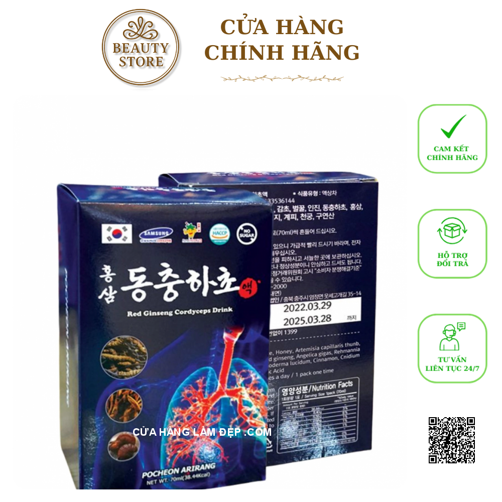 Tại hệ thống Cửa hàng làm đẹp, Nước Hồng Sâm Đông Trùng Hạ Thảo Bổ Phổi Pocheon Red Ginseng Cordyceps Drink có giá: 650.000 VND