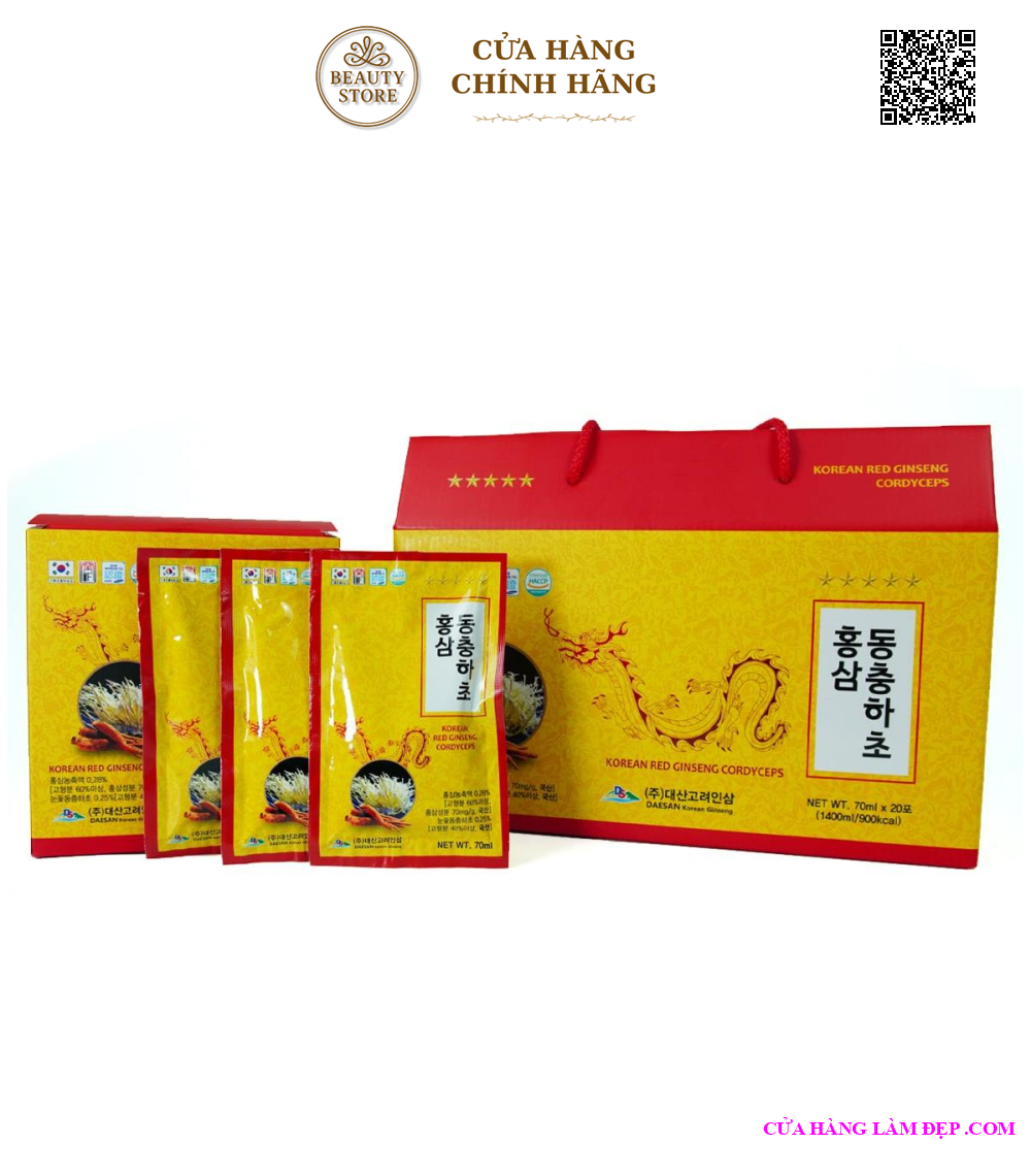 Tại hệ thống Cửa hàng làm đẹp, Nước Hồng Sâm Đông Trùng Hạ Thảo Daesan Korean Red Ginseng Cordyceps có giá: 312.000 VND