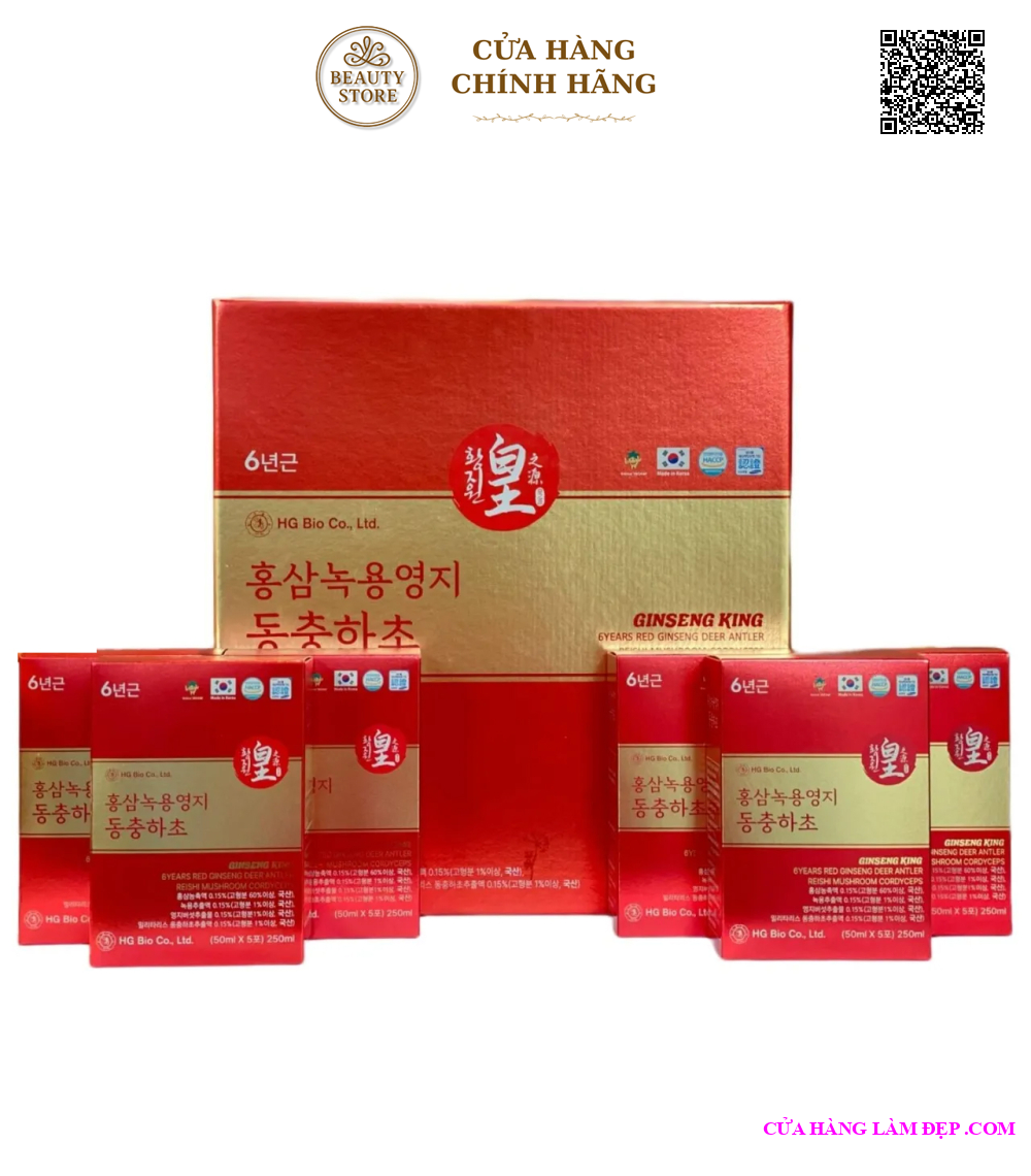 - Bạn có thể tìm mua Nước Hồng Sâm Nhung Hươu Linh Chi Đông Trùng HG Bio Ginseng King 6 Years Red Ginseng Deer Antler Reishi Mushroom Cordyceps qua website: cuahanglamdep.com
