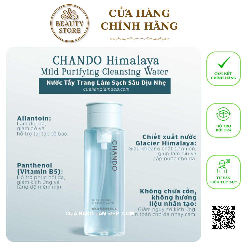 7. Sản phẩm Nước Tẩy Trang CHANDO Himalaya Mild Purifying Cleansing Water Làm Sạch Sâu Dịu Nhẹ của nước nào?