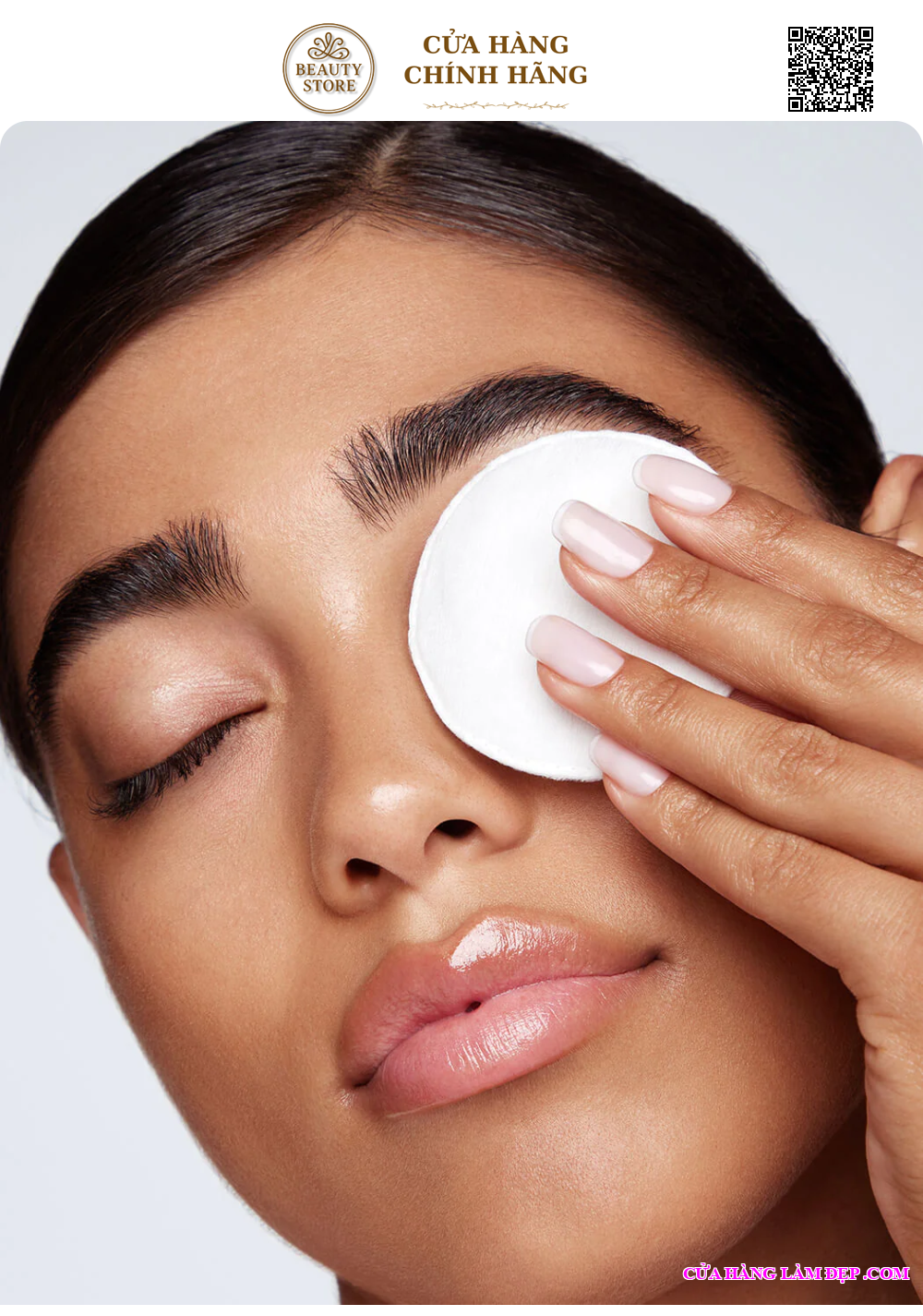 Bước 3: Lau sạch nhẹ nhàng vùng da quanh mắt và sử dụng lại lần nữa nếu cần để loại bỏ hoàn toàn bụi bẩn và lớp trang điểm mi, mày và mí mắt.