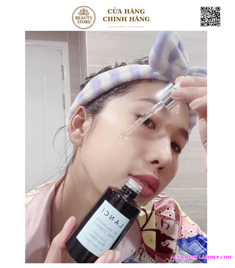 -Lấy 3 - 5 giọt tinh chất ra lòng bàn tay, áp đều khắp mặt cho nước thần Lanci Whitening Essence thấm đều và làm căng bóng da từ bên trong