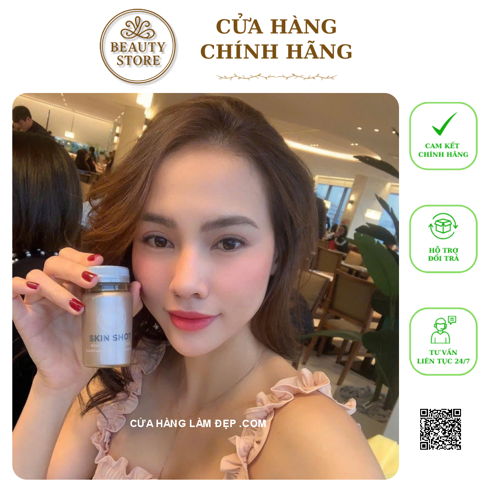 Nước Uống Skinshot Đẹp Da Hỗ Trợ Ngừa Lão Hóa nổi bật với công dụng Hỗ Trợ Ngừa Lão Hóa, bảo vệ và hồi sinh làn da, bay nám trắng hồng. Với công thức độc đáo chất chống oxy hoá cực đại (Macro_antioxidants) đã được đăng ký độc quyền tại Châu Âu, SkinShot đem lại hiệu quả tuyệt vời cho làn da phụ nữ, đó là sự thúc đẩy tổng hợp collagen tự nhiên và duy trì độ đàn hồi cho da. Sau khi ra mắt thị trường và tính đến thời điểm hiện tại, SkinShot là dòng sản phẩm chăm sóc da hàng đầu được giới làm đẹp Châu Âu ưa chuộng. Còn ở Việt Nam, sau 7 tháng ra mắt, SkinShot đã khiến cho các chị em từ phân vân về một thương hiệu mới tới “nghiện” đến mức uống mấy tháng trời vẫn chưa dứt! Có rất nhiều khách hàng đã tin dùng và đạt được hiệu quả ngoài mong đợi, đặc biệt là các nghệ sĩ như diễn viên Kim Lý, diễn viên Trương Ngọc Ánh, diễn viên Kim Tuyến, ca sĩ Tiêu Châu Như Quỳnh, hot Khác blogger Yumi Dương… Là những người rất kỹ tính khi lựa chọn sản phẩm chăm sóc sắc đẹp.