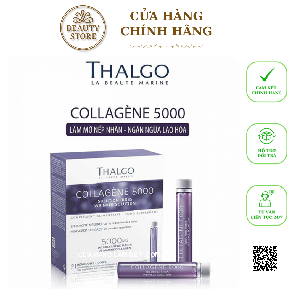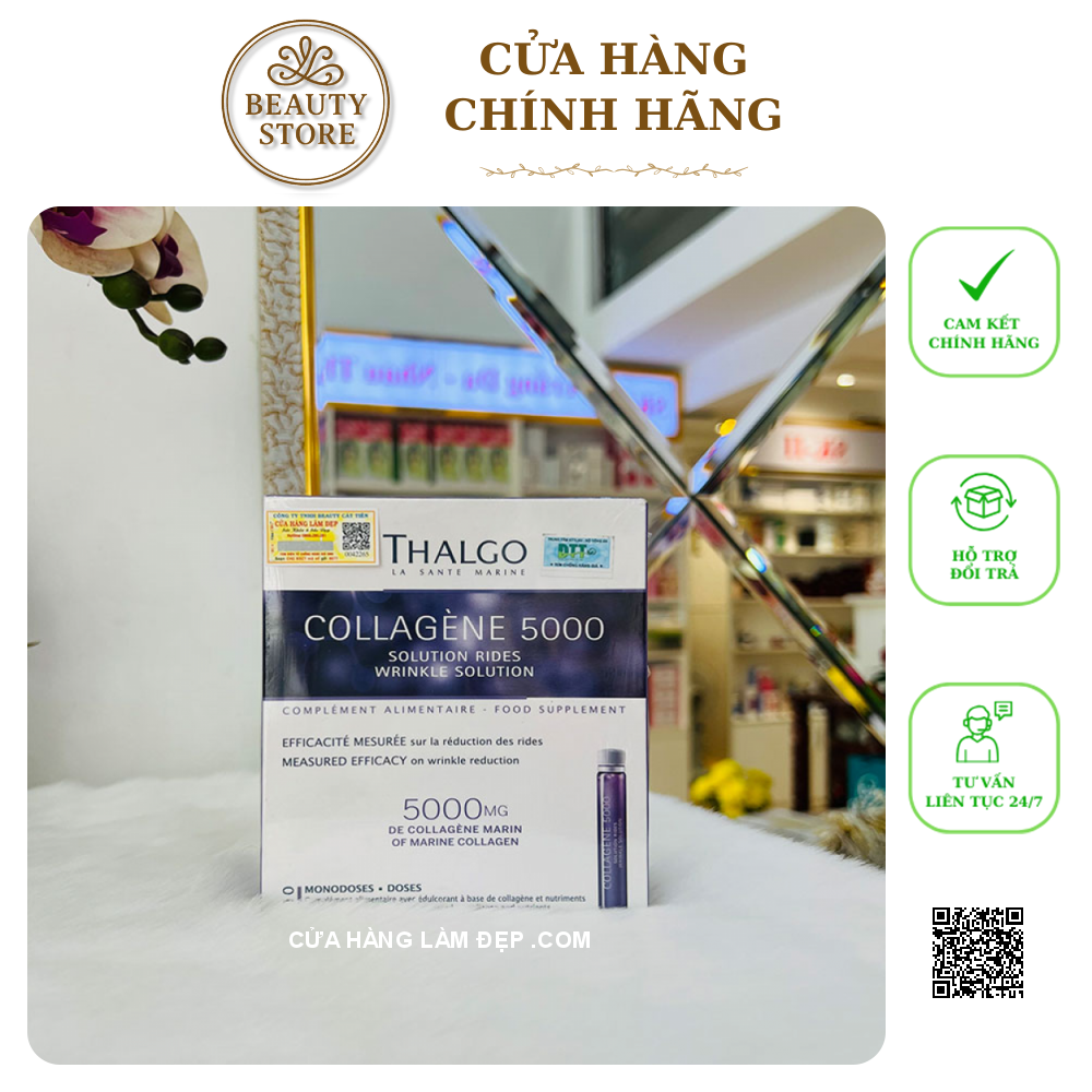 - Nước Uống Collagene 5000mg Thalgo chứa 5000mg collagen biển dưới dạng phân tử siêu nano, nhanh chóng đi đến từng tế bào da trên toàn cơ thể. Thalgo Collagen 5000mg giúp cải thiện sức khỏe hữu hiệu và làn da đẹp lên trông thấy cùng nhiều hiệu quả khác.